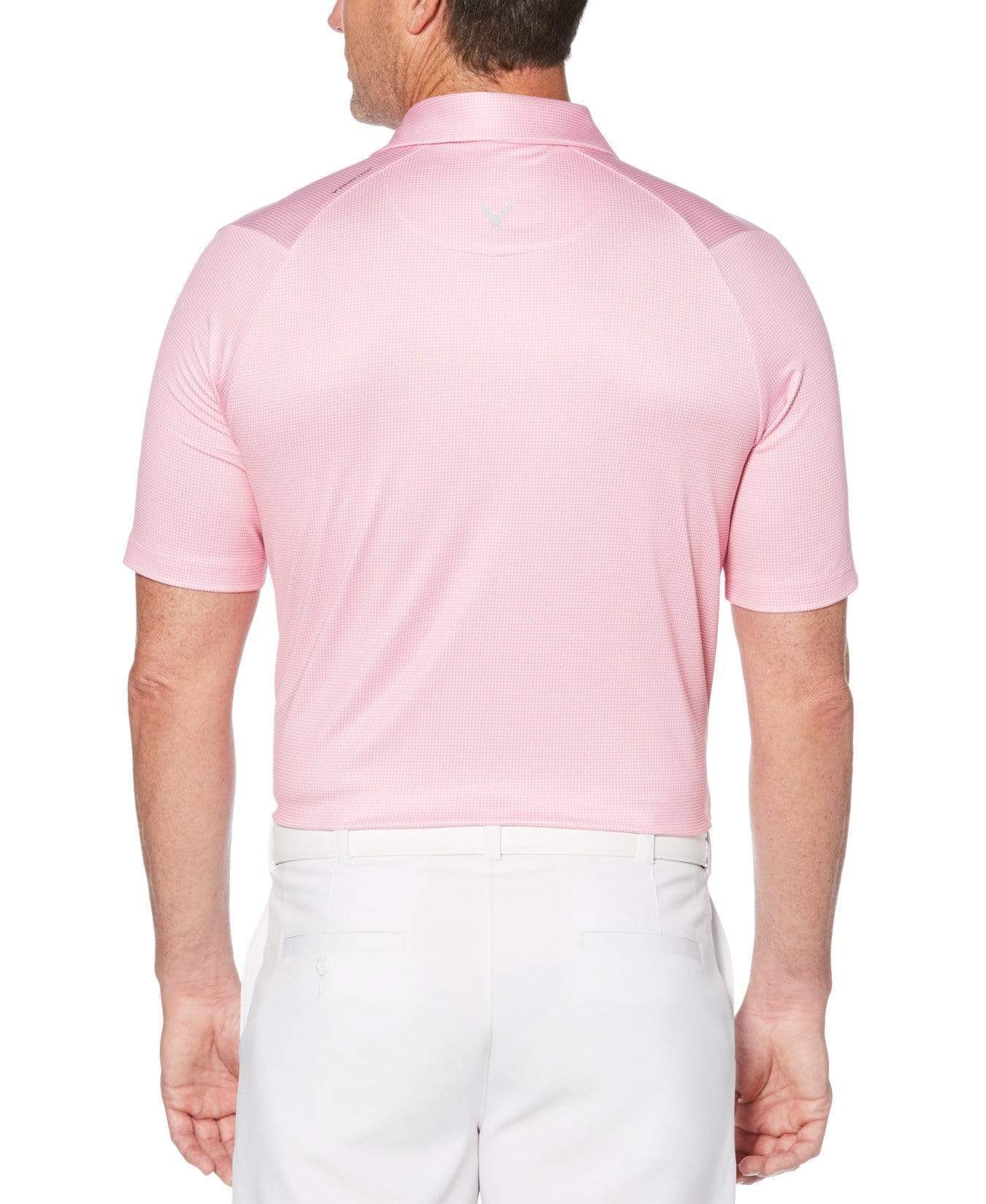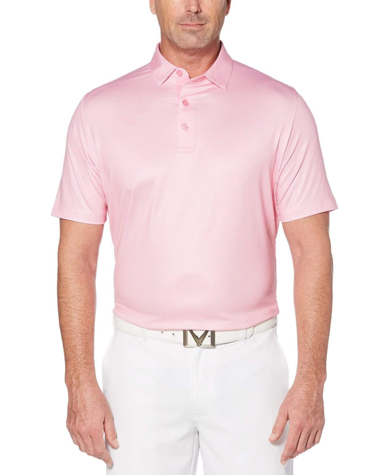 Our Callaway men's golf polo offers just the right amount of stretch so you can perfect your swing. It has an allover gingham print that looks great on the course and features built-in Opti Dri™ moisture-wicking technology to pull sweat away from your skin. This sleek men's golf top is equipped with UPF 50 sun protection to block the sun's harmful rays.