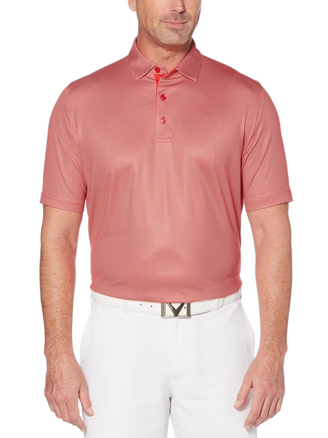 Our Callaway men's golf polo offers just the right amount of stretch so you can perfect your swing. It has an allover gingham print that looks great on the course. Opti Dri™ moisture wicking technology built into our men's golf shirts pulls sweat away from the body for on-course comfort throughout your round. Built-in sun protection prevents harmful UV rays from penetrating the fabric of the golf top, helping to protect covered skin on sunny days spent outdoors.