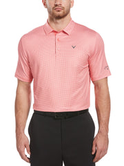 Maximize your performance in this Callaway men's golf polo. This versatile golf shirt has a subtle allover gingham print that pairs easily with a variety of bottoms. It's crafted from a durable stretch material with built-in Swing Tech technology to enhance your range of motion. A self collar with three-button placket add classic polo style and Opti-Dri¿ moisture-wicking technology pulls sweat away from your body to keep you cool and dry.
