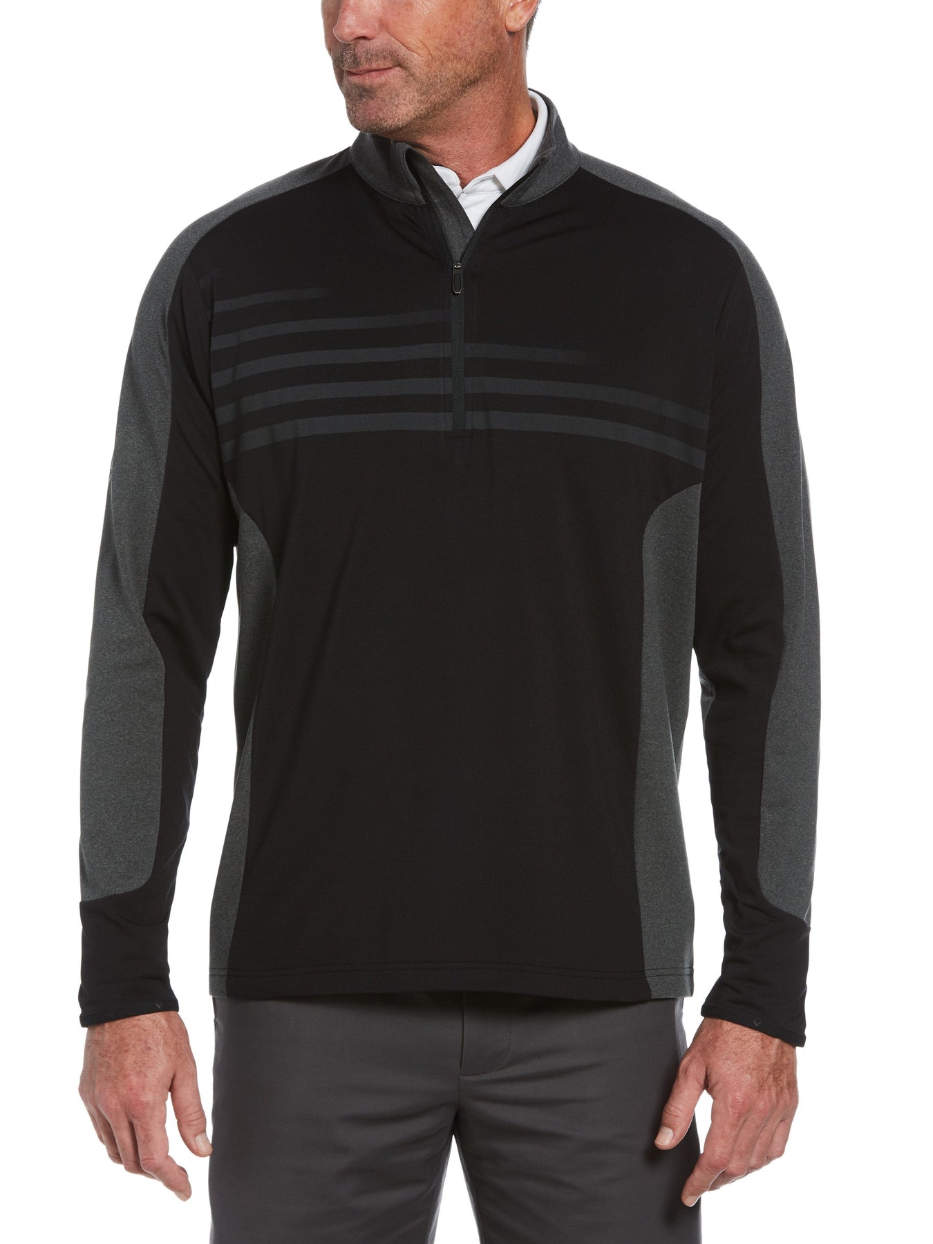 Play through the elements in this Weather Series™ Callaway men's long sleeve pullover. Its breathable jersey fabrication is enhanced with Aquapel™ technology, a fast-drying, water-repellent finish that resists water and spills. Designed for effortless movement with every shot, this golf outerwear is equipped with Swing Tech™ for added stretch in the shoulder seams for a full range of motion. Stylish and functional, the golf shirt has an eye-catching embossed print on the chest, and a 1/4 zip that allows you to remove a layer in no time if the weather warms up.
