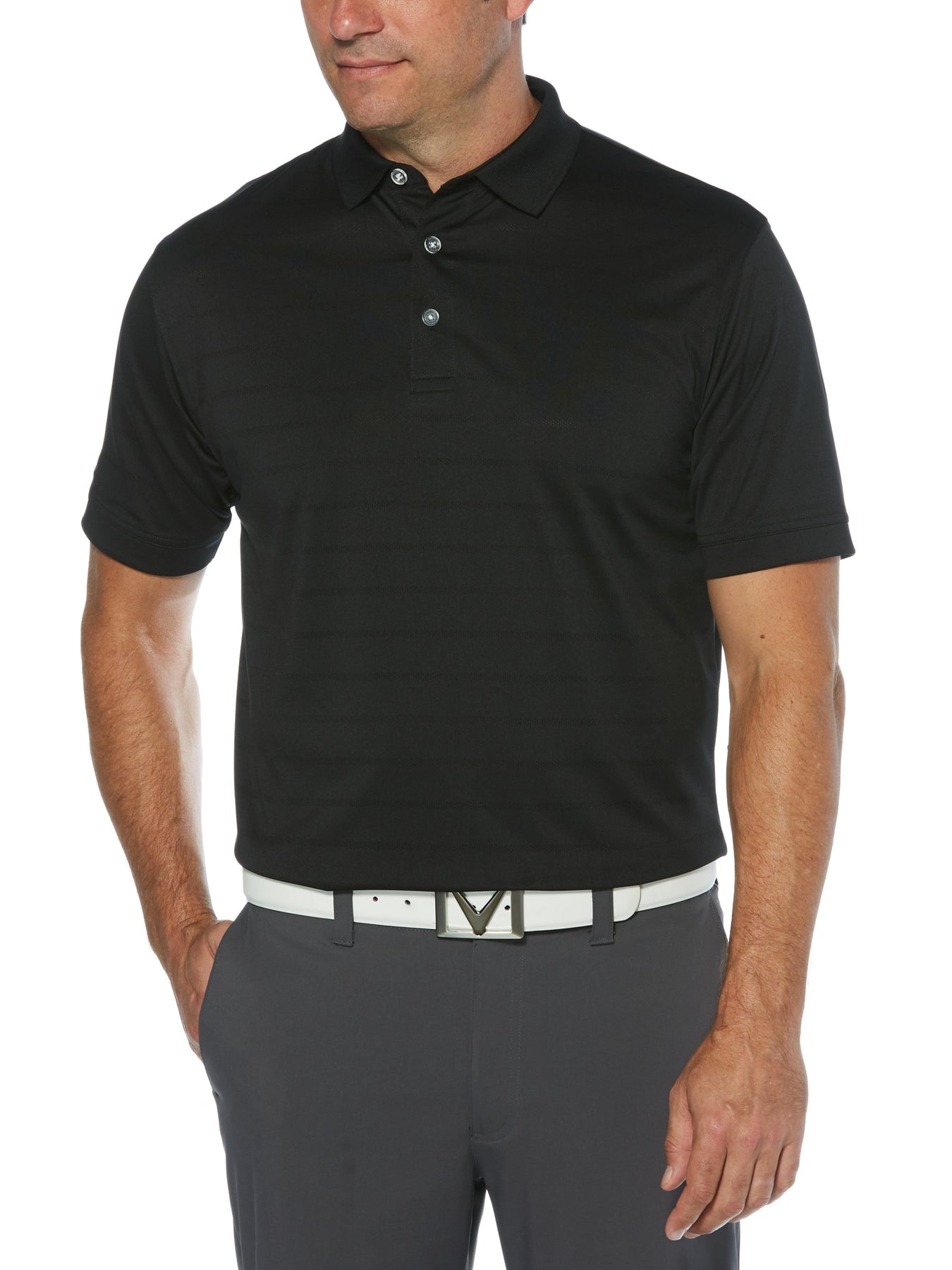 Swing through the second cut with ease in our Mens Vent Mesh Polo Shirt from the Callaway Standard Collection, which fuses our most classic look into a roomier fit. The sleek horizontal stripes are crafted with a light hue, accenting the main color and providing a subtle two-toned effect. Our Callaway Tour Heat Seal Logo is located on the right sleeve. Our Opti-Dri moisture-wicking technology pulls sweat away from your body so you can cool down in the heat and Vent: engineered ventilation for enhanced comfort and cooling action.
