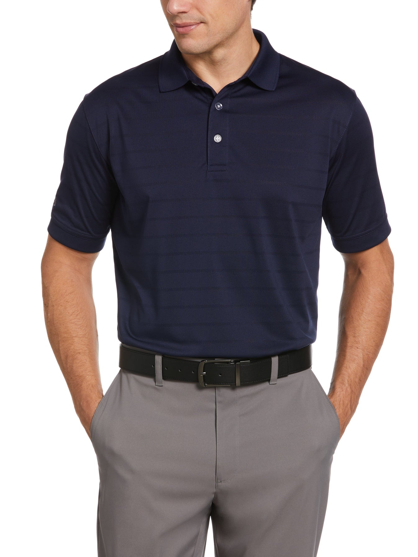Swing through the second cut with ease in our Mens Vent Mesh Polo Shirt from the Callaway Standard Collection, which fuses our most classic look into a roomier fit. The sleek horizontal stripes are crafted with a light hue, accenting the main color and providing a subtle two-toned effect. Our Callaway Tour Heat Seal Logo is located on the right sleeve. Our Opti-Dri moisture-wicking technology pulls sweat away from your body so you can cool down in the heat and Vent: engineered ventilation for enhanced comfort and cooling action.
