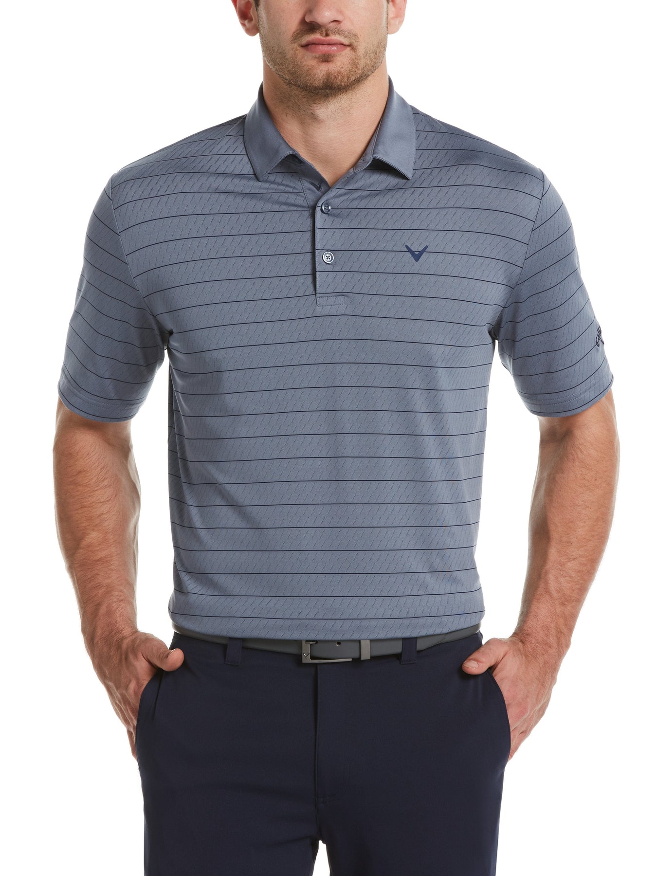 Ideal for sunny days out on the green, this Callaway golf polo has a casual striped design that will complement your existing golf attire with ease. The fabric is ventilated and equipped with moisture-wicking technology to keep you cool and dry. UV Block protection helps to block out the sun's rays, while the flexible stretch fabric allows for a comfortable range of motion.