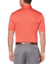 Don't let the the hot weather cool your game. This Callaway striped short sleeve polo is the perfect shirt for beating the heat. Small, diagonal slits in the jersey fabric allows air to filter through the polo, maximizing breathability on and off the course. Thin horizontal stripes add a classic element to your round of 18. Callaway's Opti Dri™ moisture wicking technology pulls sweat away from your body to keep you cool in the heat, stretch fabric is created by interwoven layers that ensure maximum range of motion, ventilated fabric is engineered to keep you cool by circulating air through the garment, and UPF 50 provides superior protection by blocking the sun's harmful UV rays.