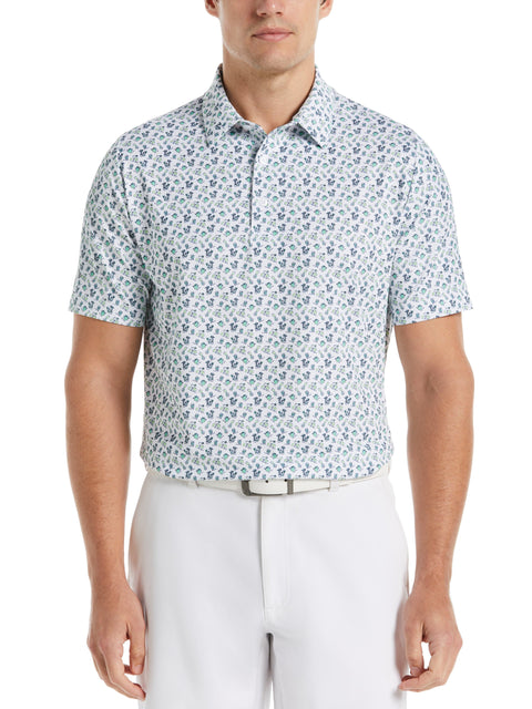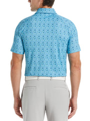 An allover print adds a lively look to this practical men’s golf shirt from Callaway. A smart addition to your golf attire, the men’s short sleeve shirt is ventilated to help keep you cool and comfortable during each round. The light single knit fabric has plenty of stretch to help ensure a flexible fit, while Swing Tech™ technology allows for a full range of motion. Great for golfers conscious of their impact on the environment, the polo shirt is crafted from 30% recycled polyester to help reduce waste sent to landfills.