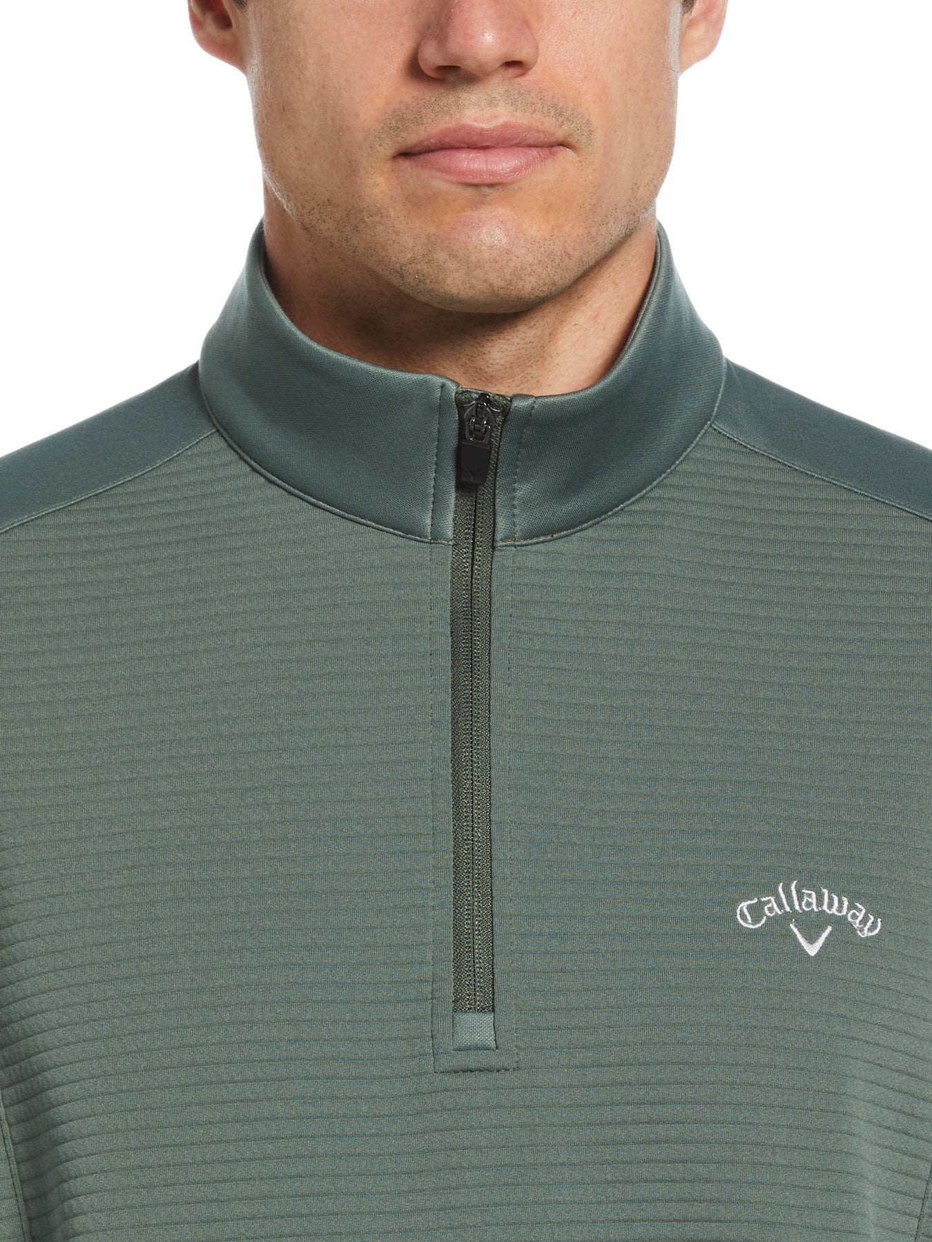 Elevate your performance and look with this long sleeve layer top from Callaway Apparel. Crafted from ottoman textured fabric, this stylish and comfortable golf base layer has built-in Opti-Dri™ technology to effectively wick moisture away from your body keeping you feeling cool and dry as you play. The quarter-zip golf top is designed with sun protection technology, working to keep you protected from harmful UV rays. Its classic double knit fabric makes the long sleeve shirt extremely durable so you can wear it under any attire on and off the course.