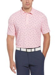 The Callaway men's golf polo shirt combines style and performance. Crafted with recycled polyester for sustainability, this golf top features stretch and Swing Tech™ for a full range of motion. The lightweight, single knit fabric is also ventilated to help you feel cool on the course. This golf polo shirt is finished with a painted chevron print for a stylish touch.