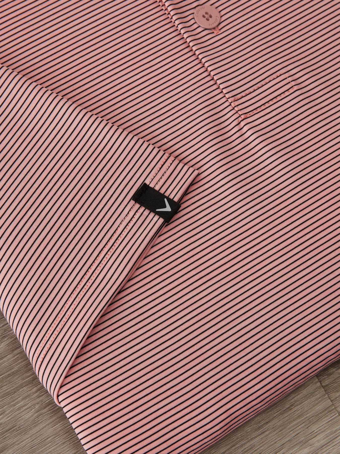 This Callaway men's golf shirt was made for superior performance and style. Crafted with elevated yarns and construction and featuring an intricate fineline pattern, this golf polo shirt has a stylish and elevated aesthetic that suits both the green and the club. The innovative construction ensures durability while Polygiene StayFresh technology helps combat odor for all-day freshness. This golf top is made with soft jersey fabric for all-around comfort.