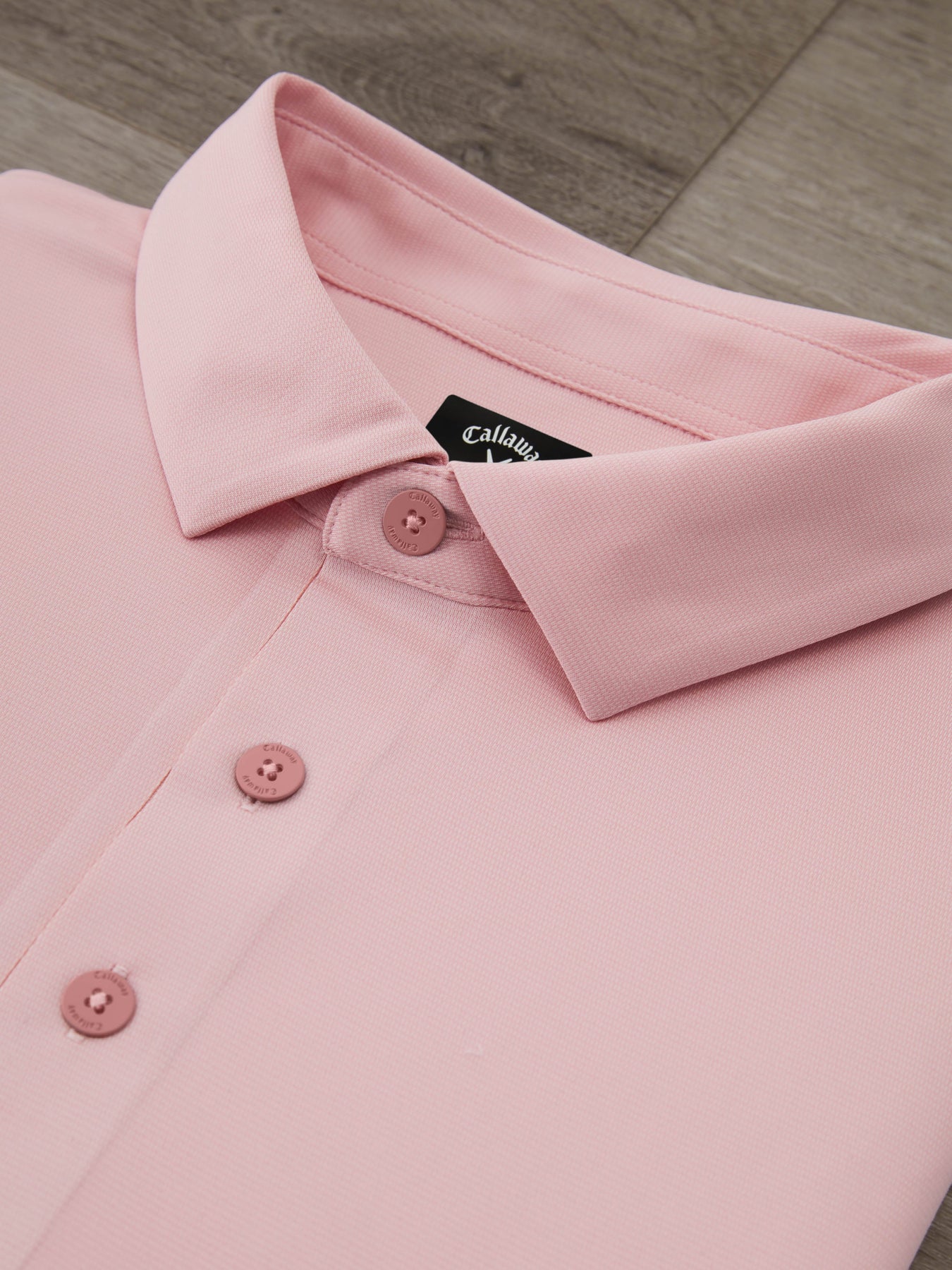 This men's golf top from Callaway is a comfortable and sleek addition to any golfer's wardrobe. Made from 100% polyester, the golf polo shirt features elevated yarns and construction for superior performance and is enhanced with Polygiene StayFresh technology for odor control. The double knit jacquard fabric offers durability and style while the laser-cut hems and placket offer a smooth silhouette.