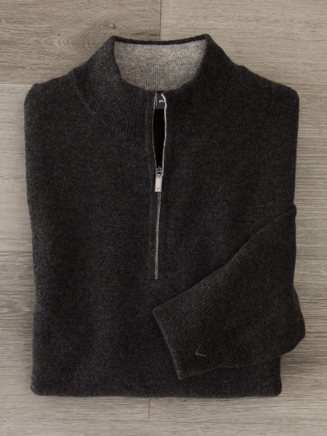 Mens Premium Cashmere Quarter Zip Golf Sweater