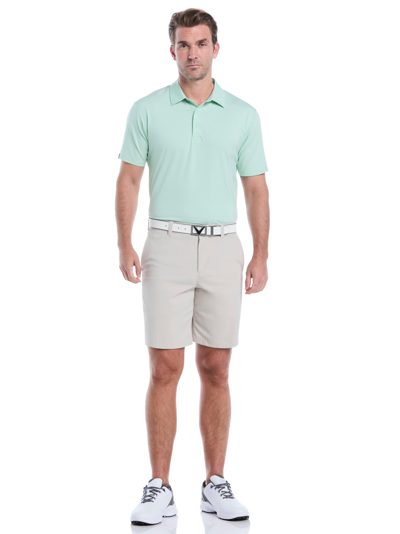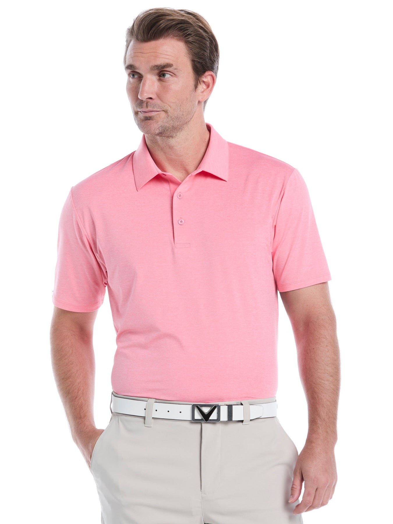 Upgrade your golf wear with this Callaway men's golf shirt. Featuring premium stretch fabric and construction, this golf polo shirt offers superior performance on the course. Polygiene StayFresh technology helps combat odor for all-day freshness while smooth laser-cut hems and placket and the soft jersey fabric create a comfortable fit. This golf top is finished with a smart two-tone pattern for a subtle touch of style.