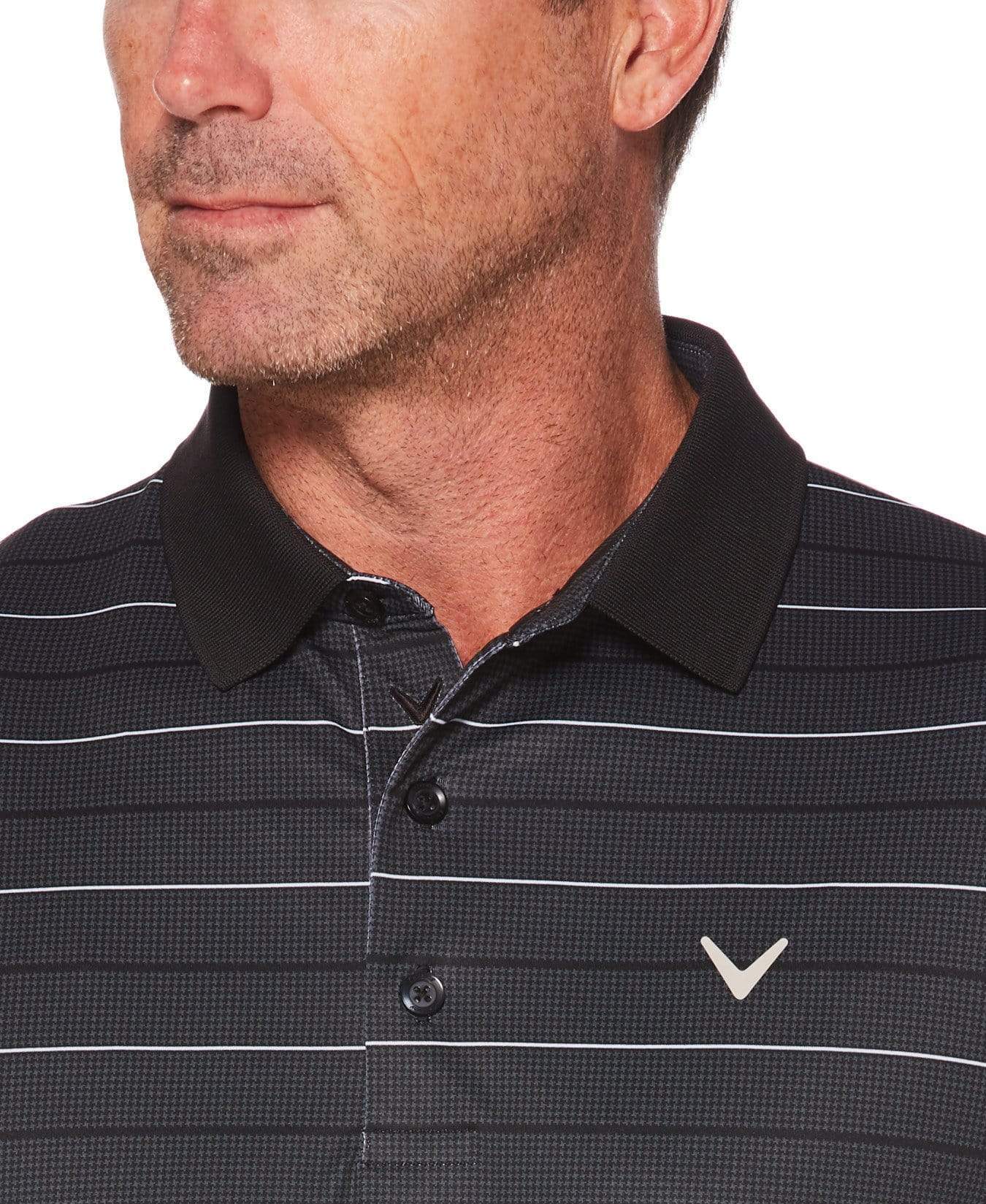 This Callaway golf polo makes a versatile addition to your existing golf wardrobe. A classic houndstooth pattern enhances the striped design for a look suited to both the clubhouse and the green. Sturdy stretch fabric moves with your every swing.