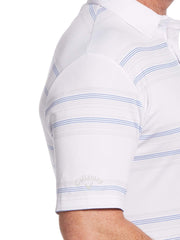 Vertical stripes give this Callaway men's golf shirt versatile style. Stretch fabric allows a full range of motion for every swing. Moisture-wicking technology keeps you cool and dry for all-day comfort on the course. A three-button placket and ribbed collar complete the smart golf polo.