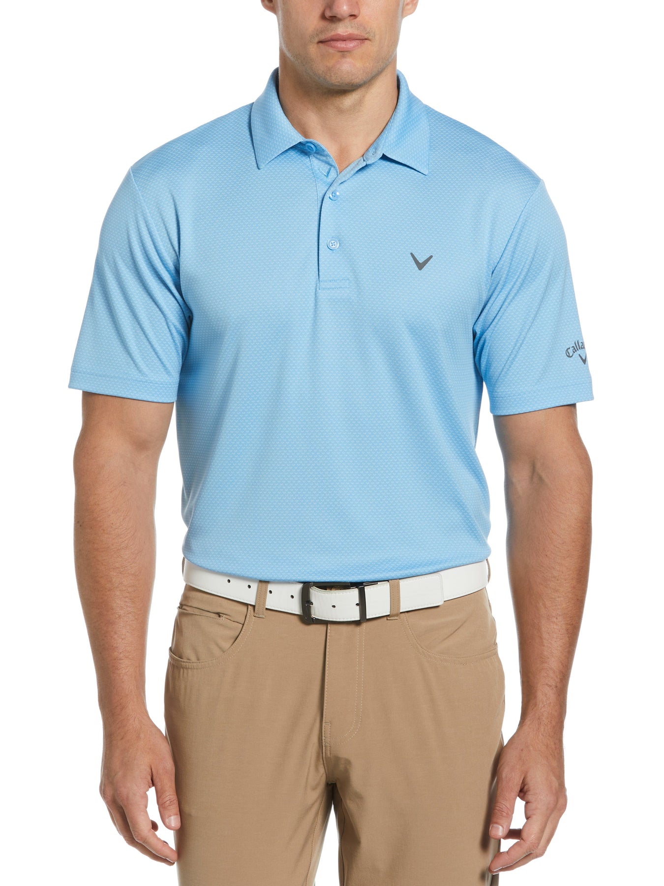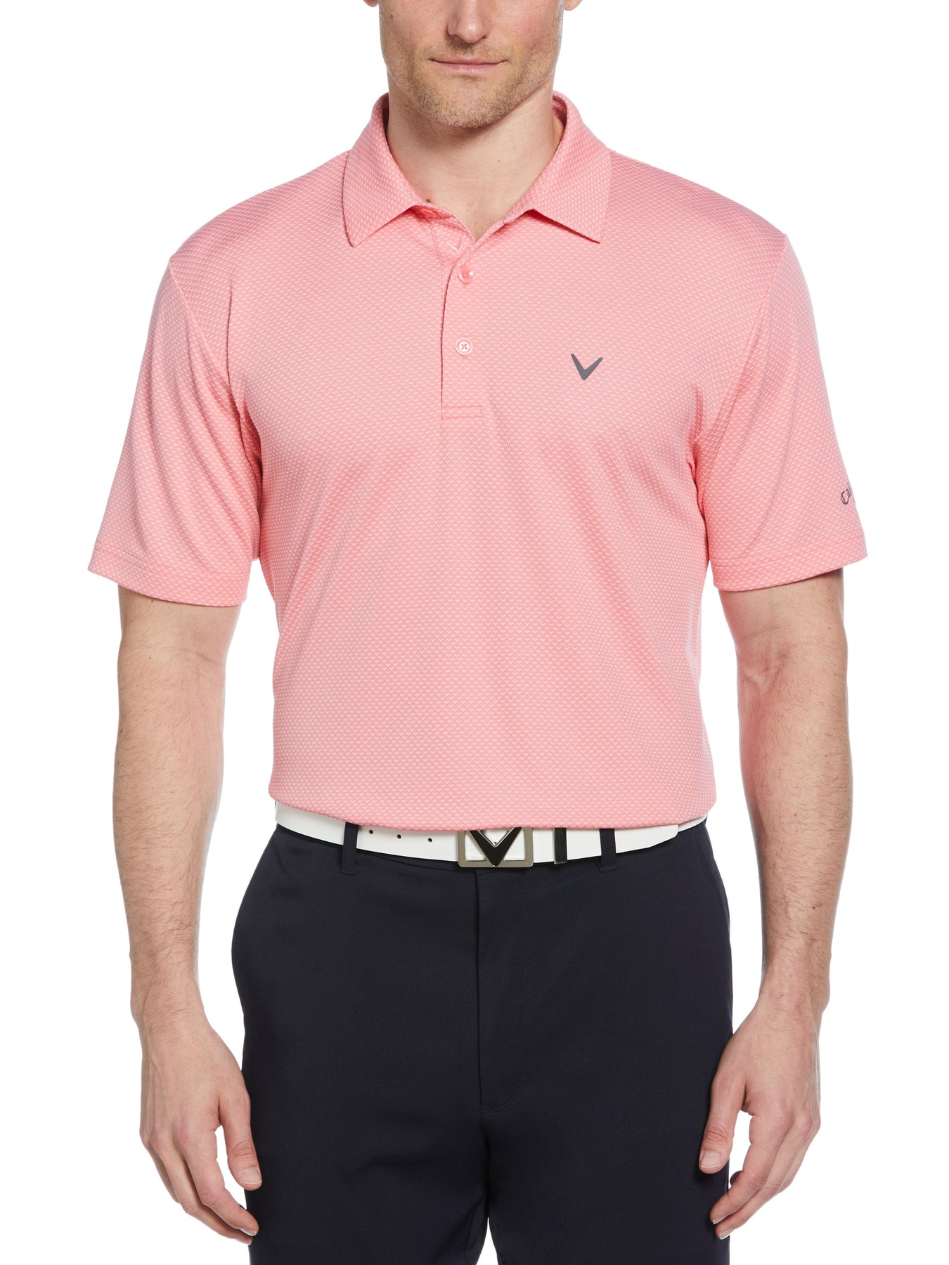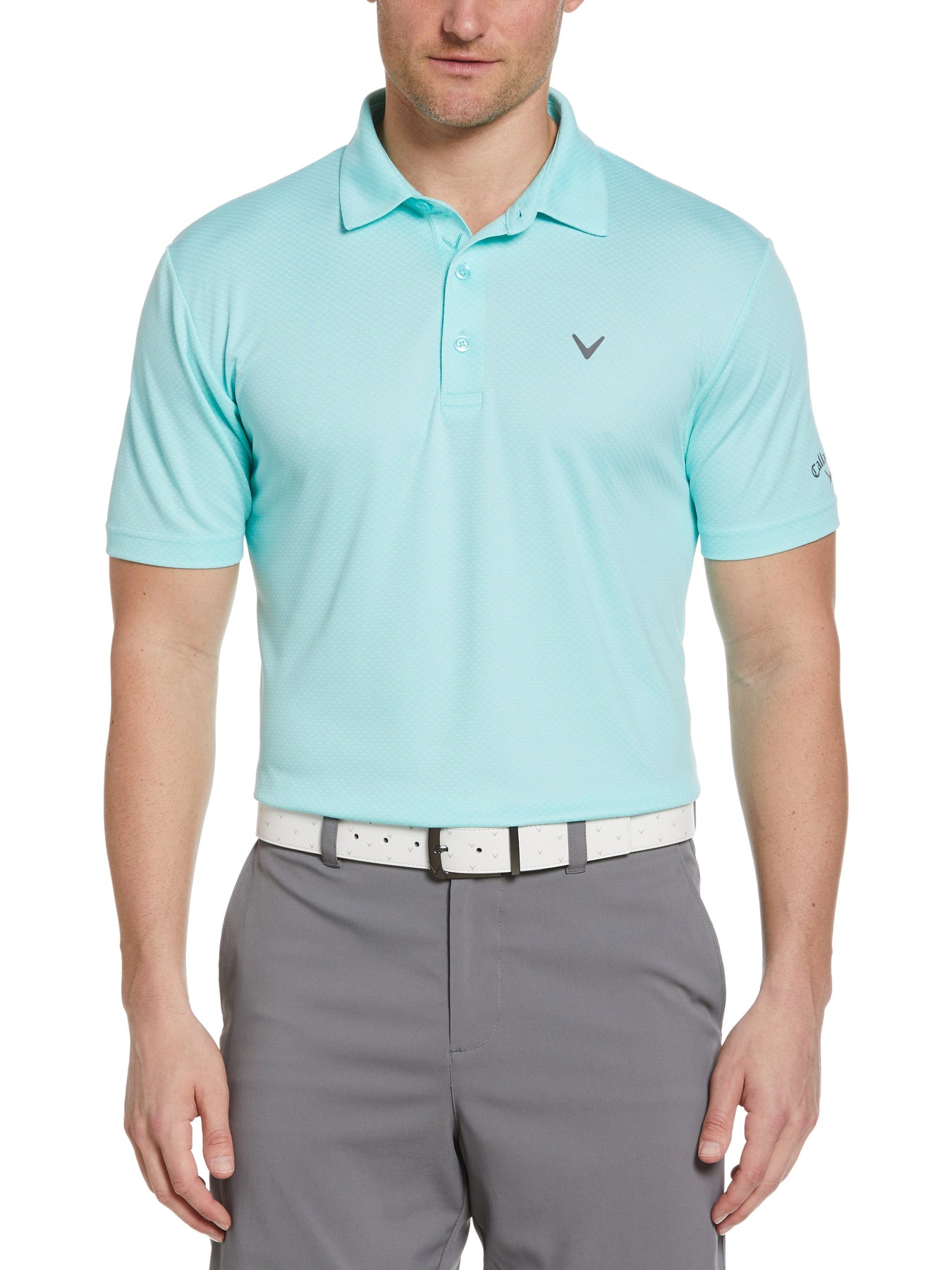 With its blend of comfort and performance features, the Callaway men’s Pro Spin chevron jacquard golf shirt makes a winning addition to your golf apparel. A chic chevron print brings fashionable flair to this sporty men’s polo shirt and the classic golf fit creates a roomy silhouette for distraction-free comfort that won’t slow you down. Fashionable and functional, this performance golf top is available in a full range of regular sizes to comfortably accommodate the avid golfer
