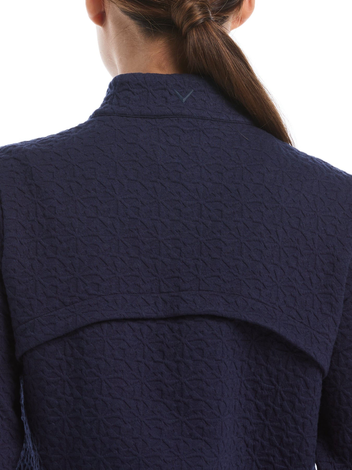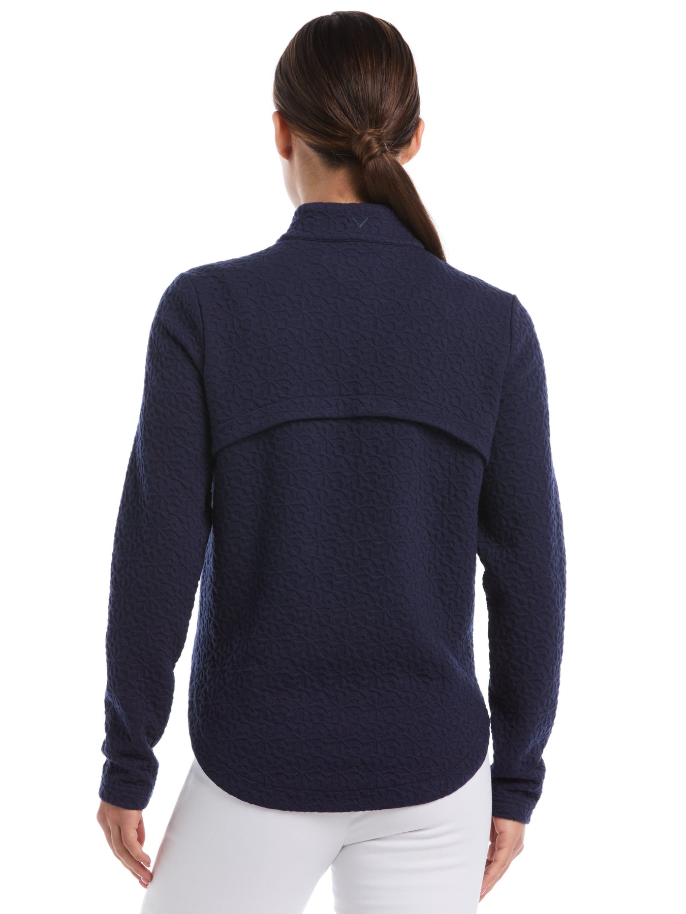 Stay comfortable and protected with the women's golf windwear from Callaway Apparel. This 1/2 zip long sleeve layer is engineered to give players every advantage even in challenging conditions. Advanced double knit jacquard fabric construction delivers just the right warmth, protection, and style. Completed with Swing Tech™ for added stretch designed to optimize every swing without restriction and features moisture-wicking Opti-Dri to keep you dry and off the course.
