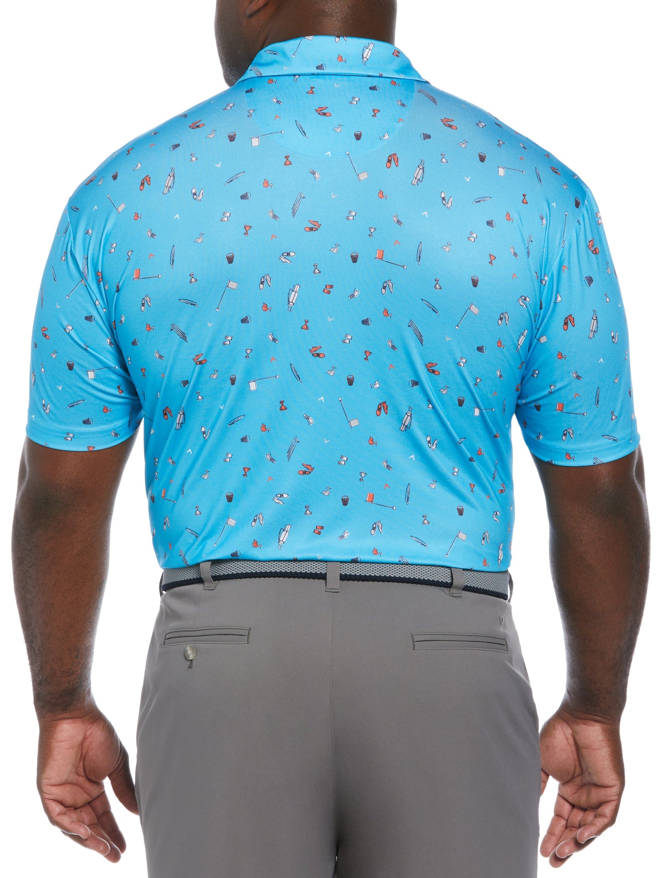 Big & Tall Short Sleeve All Over Tee Time Print Polo-Polos-Callaway