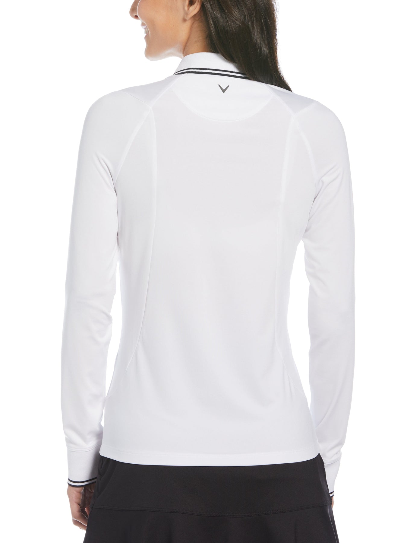 Enjoy full upper body coverage as you play in this Callaway golf shirt. Opti Dri™ moisture wicking technology built into our womens golf shirts pulls sweat away from the body for on-course comfort throughout your round. This comfortable womens golf polo is crafted from lightweight, stretch fabric that allows you to maximize your range of motion. Drive the ball down the fairway or putt for par without restriction. Built-in sun protection prevents harmful UV rays from penetrating the fabric of the golf top, helping to protect covered skin on sunny days spent outdoors.