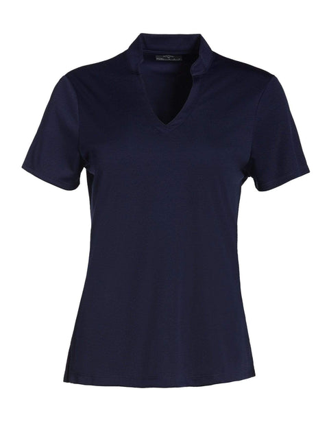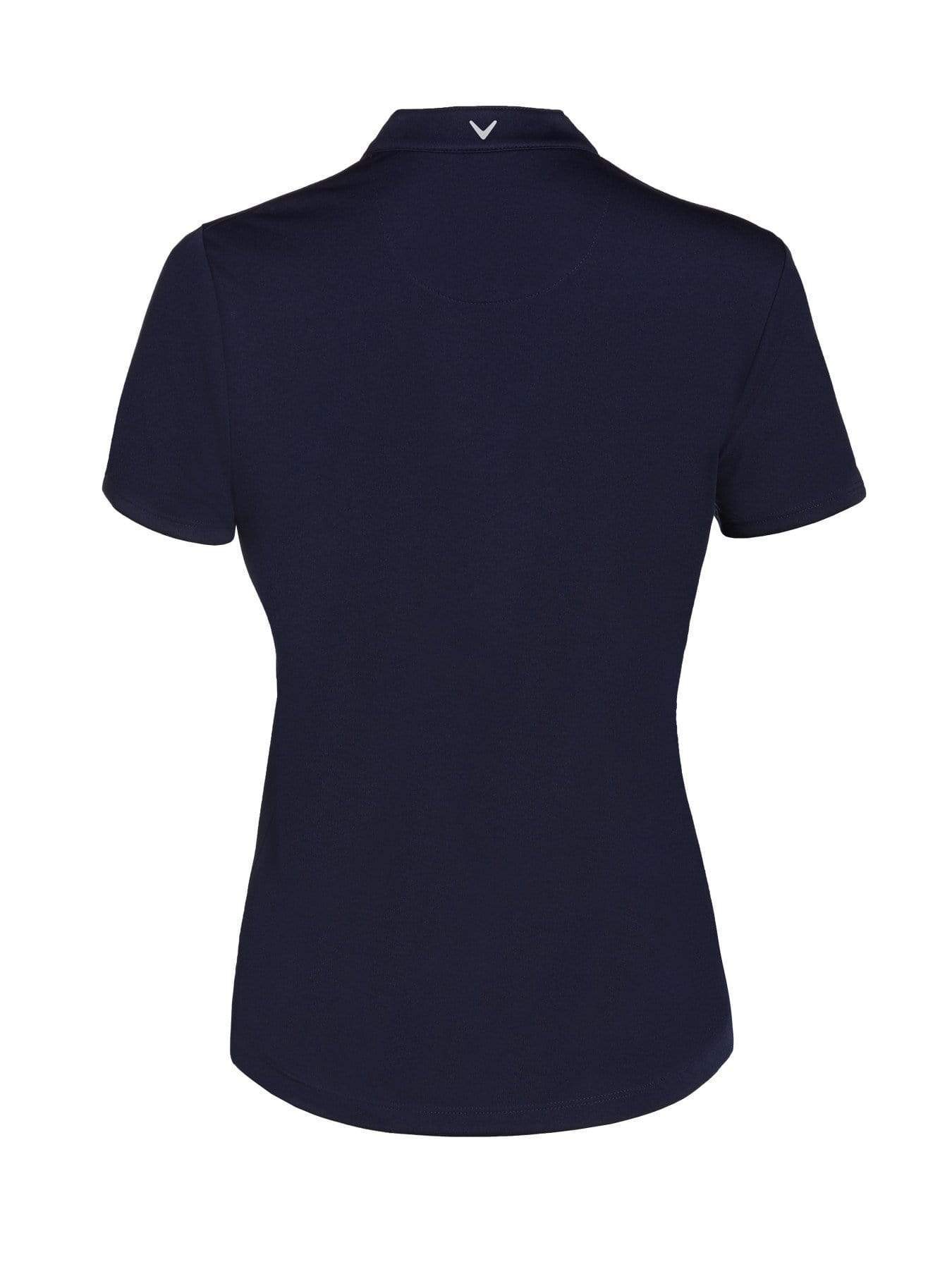 Easy to pair with almost any bottom, this sensible solid-colored V-neck tee from Callaway will quickly become one of your go-tos for the golf course. The women's golf shirt is made from interlock knit fabric, which offers a hint of stretch for an enhanced range of motion. It has moisture-wicking technology to help keep you dry when the sun is beating down on the fairway. Sun protection technology helps to block out harmful UV rays.