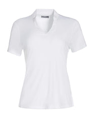 Easy to pair with almost any bottom, this sensible solid-colored V-neck tee from Callaway will quickly become one of your go-tos for the golf course. The women's golf shirt is made from interlock knit fabric, which offers a hint of stretch for an enhanced range of motion. It has moisture-wicking technology to help keep you dry when the sun is beating down on the fairway. Sun protection technology helps to block out harmful UV rays.