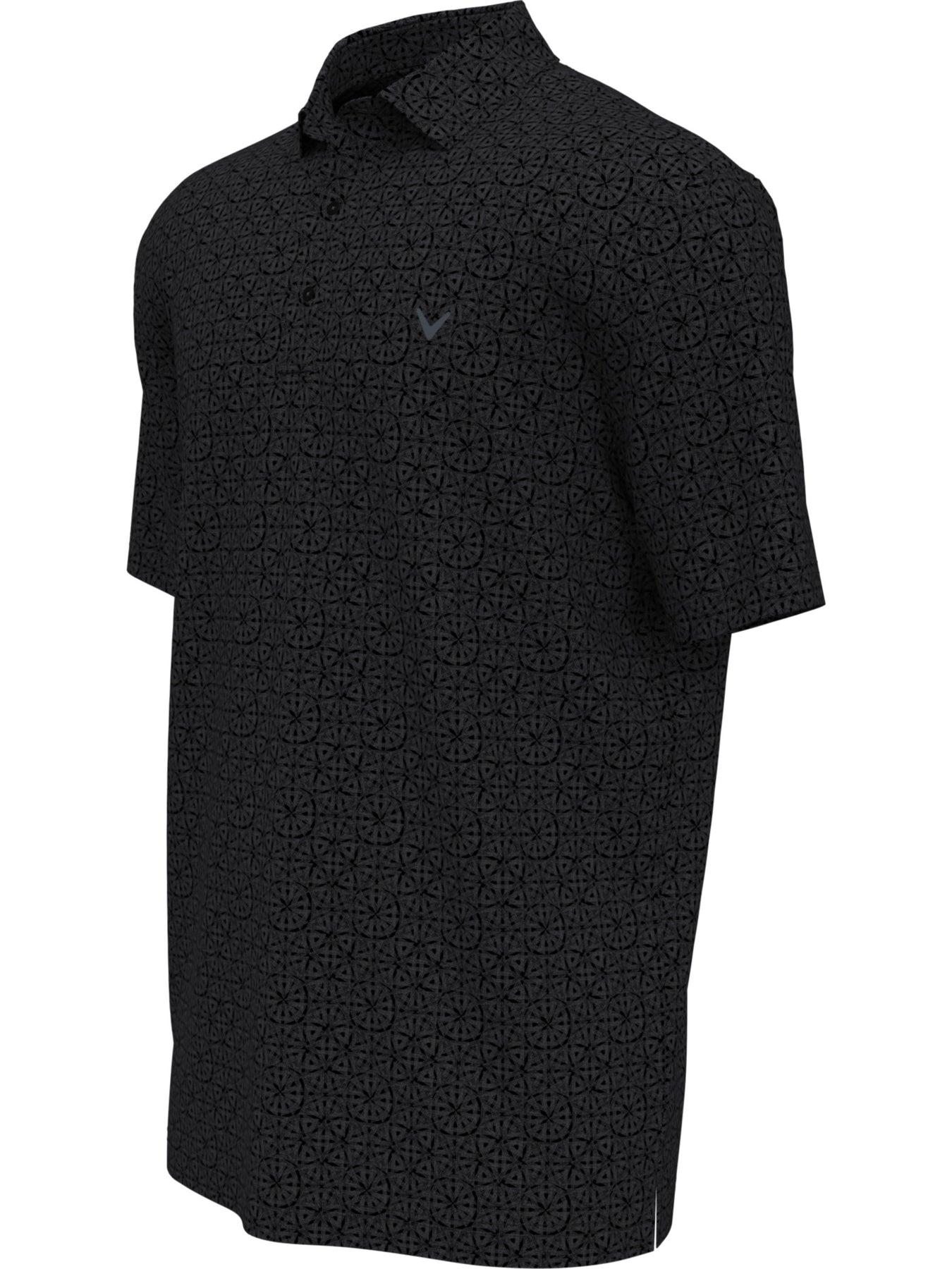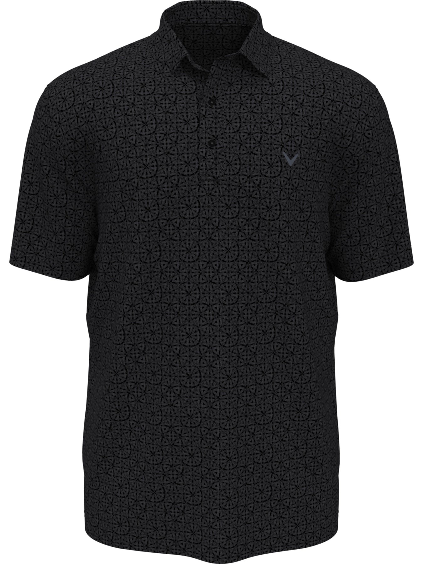 Covered from top to bottom with a funky foulard print, this Callaway men’s golf shirt will help you set your style apart out on the course. The short sleeve golf shirt has sun protection and moisture wicking technologies to help keep you comfortable and dry. The shirt is made with a soft jersey knit fabric that features added stretch to let you swing smoothly.
