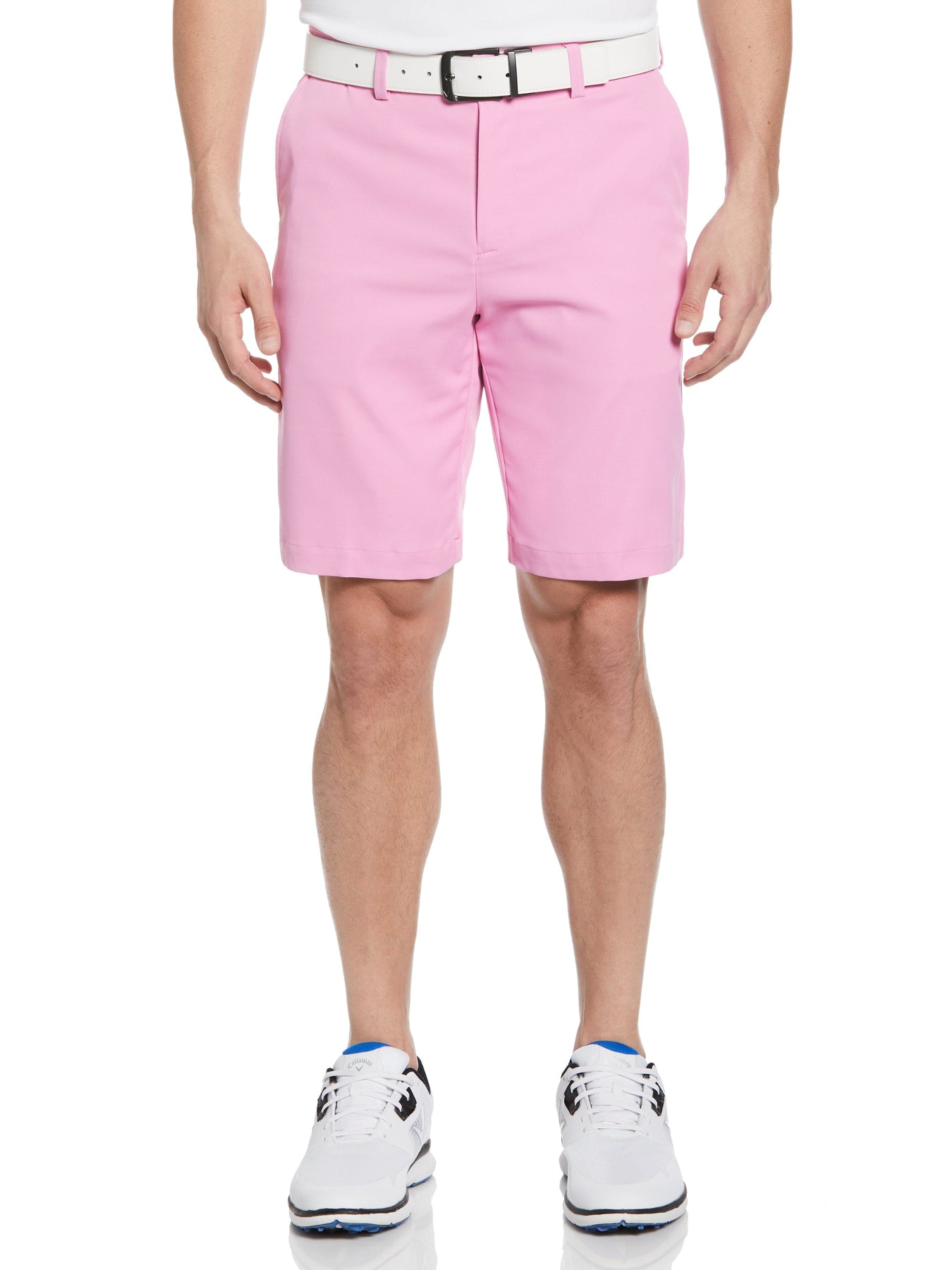 Hit the course in comfort in these Callaway Men's Pro Spin 3.0 Performance Golf Shorts. These lightweight twill golf shorts are crafted from sustainably sourced Dupont Sorona fabric for flexible comfort that can keep up with your active lifestyle. Opti Dri™ moisture-wicking technology pulls sweat away from your body for a dry fit that keeps you cool as your game heats up, and sun protection helps to filter out harmful UV rays as you play through on sunny days. The active waistband on these men’s golf shorts stretches with you while gripping your shirt to keep it neatly tucked in place as you bend and twist and the front and back pockets offer easy hands-free storage for your scorecard, tees and ball marker. Pair these comfortable golf shorts with an authentic Callaway golf shirt for performance golf wear that makes every stroke count. The men's shorts come in both Big & Tall and Regular sizes.