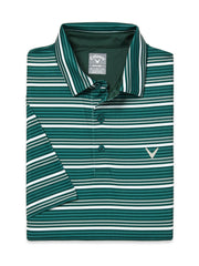 Printed all over with eye-catching stripes, this Callaway golf polo offers both effortless casual style and smart performance features. The men’s golf shirt is crafted from a lightweight jersey knit fabric, with a good amount of stretch to help ensure a comfortable fit and a full range of motion. The material offers moisture-wicking technology to help keep you dry, and built-in sun protection helps to block damaging UV rays from passing through.