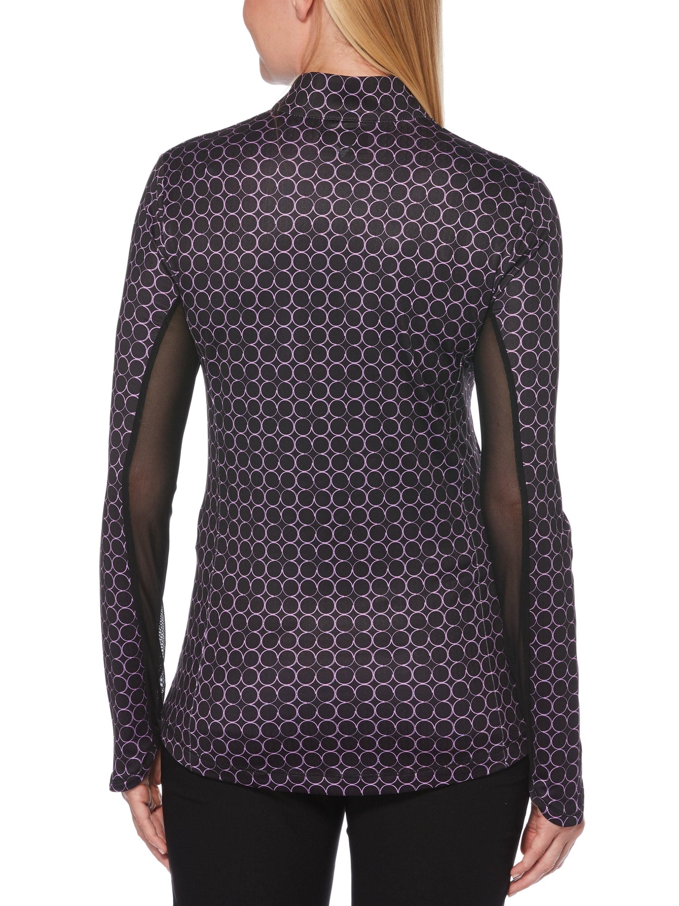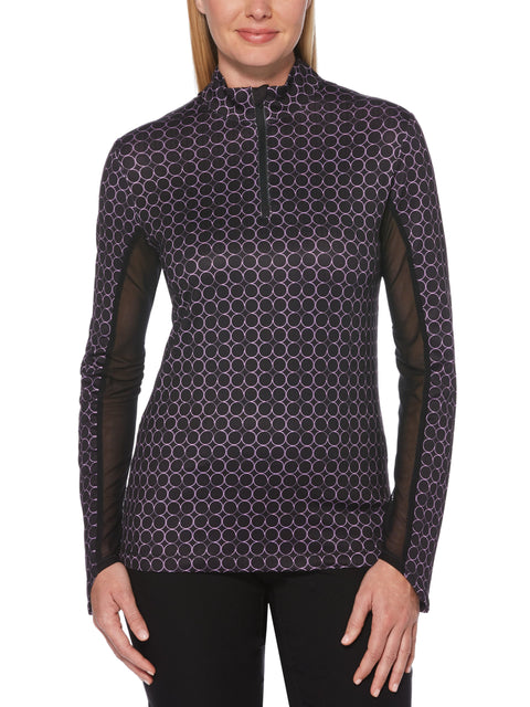 This Callaway women's golf top provides extra coverage to help protect your skin from damaging rays. The long sleeve golf shirt boasts cooling technology and ventilation at key areas to help you stay comfortable. Stretch fabric and a Swing Tech design allow for a full range of motion. Opti Dri™ moisture-wicking technology helps to keep you cool and dry. An eye-catching allover print adds energy to your outfit.
