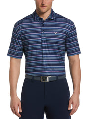 Covered from top to bottom in stripes that look like they’ve been drawn on with blackboard chalk, this Callaway polo shirt will bring a creative twist to your golf attire. The men’s golf shirt is crafted from a soft and breathable jersey knit fabric, making it a great option for regular wear in any season. The material features a comfortable amount of stretch to let you move smoothly and naturally for each swing. Ideal for teeing off on sunny days, the men’s shirt has moisture wicking technology to help keep you dry and sun protection to help guard against damaging UV rays.