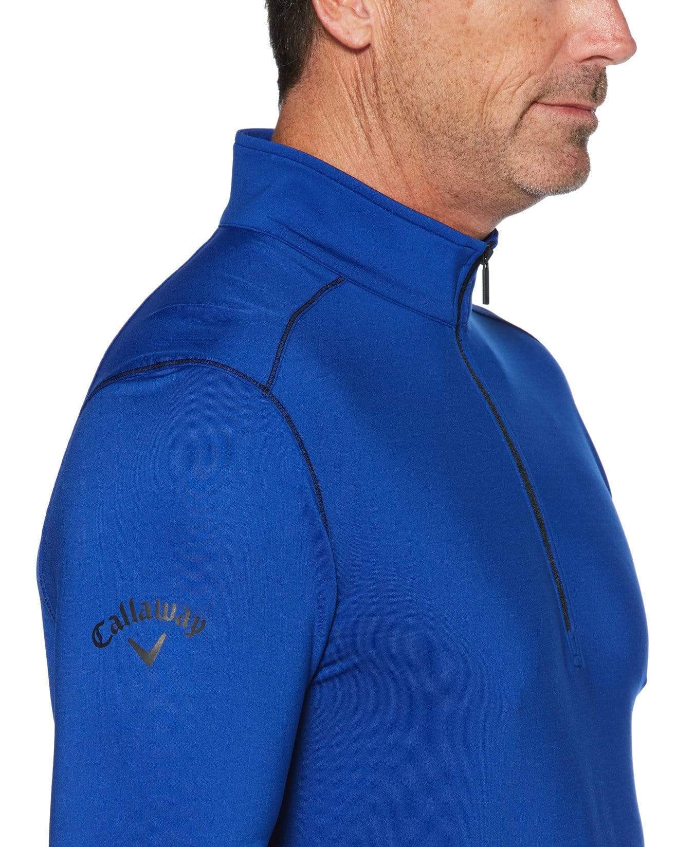 Take on the elements in this Callaway midlayer golf pullover with mock collar. Designed to keep you on course, it features innovative Outlast technology that keeps you cool in warm weather and warm in cold weather. Outlast technology, originally developed for NASA, utilizes phase change materials (PCM) that absorb, store and release heat for optimal thermal comfort. Stretch fabric is enhanced with Swing Tech through the shoulders, letting you maximize your range of motion with every shot.