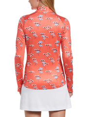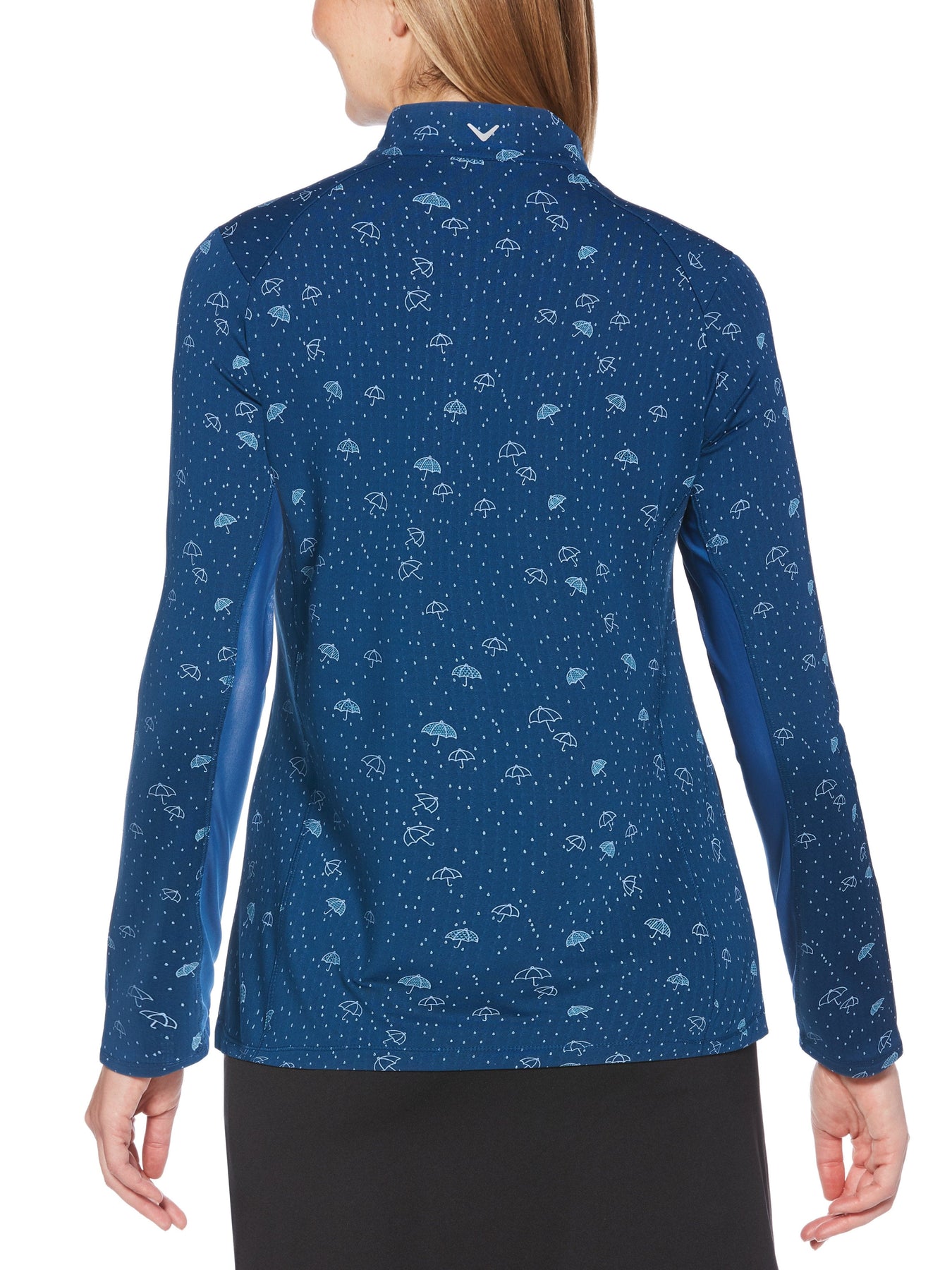 An eye-catching scattered print stands out on this Callaway sun protection golf pullover. The lightweight single knit long sleeve golf pullover provides full upper body coverage and UPF 50+ protection to prevent UV rays penetrating the fabric. Zonal ventilation keeps you cool while Opti Dri™ technology keeps you dry by wicking moisture away from your body as you play. Stretch in the material along with Swing Tech™ technology provide a full range of motion for smooth swings. A 1/4 zip allows you to adjust the collar for comfort and preferred coverage.