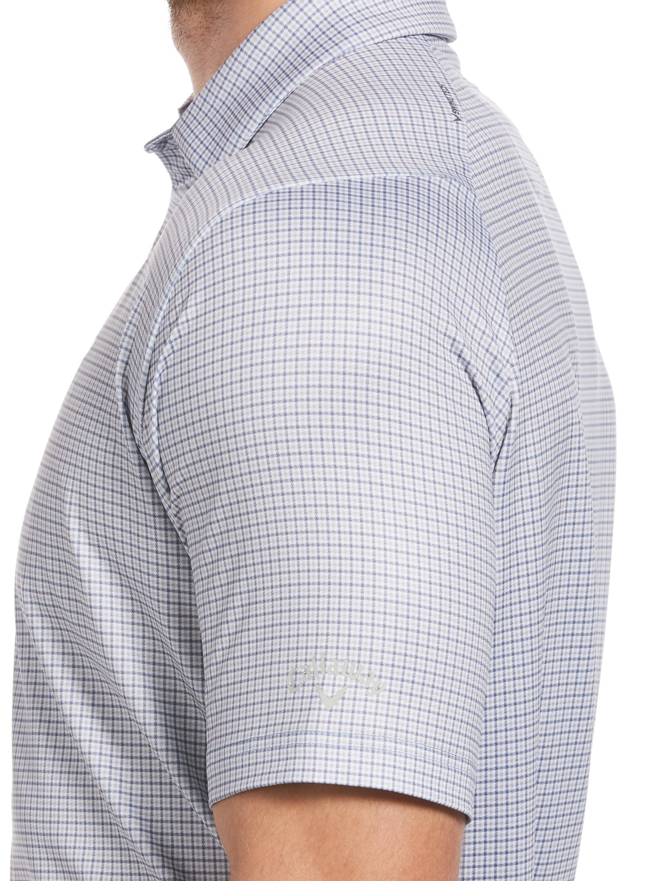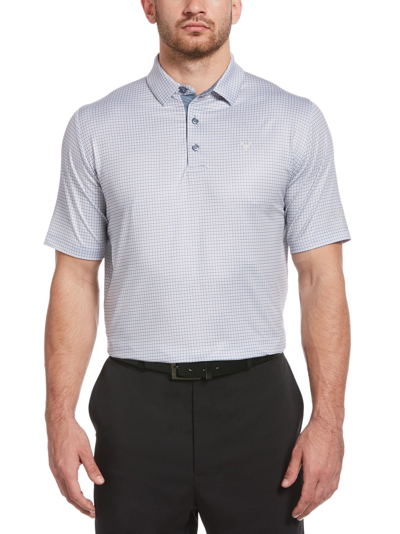 A unique micro tattersall print gives this Callaway golf polo visual appeal to go with its impressive performance. Swing Tech provides greater flexibility through the shoulders, delivering enhanced range of motion with every swing. Complete with a three-button placket and self collar, this lightweight men's golf shirt is an optimal blend of fashion and function.