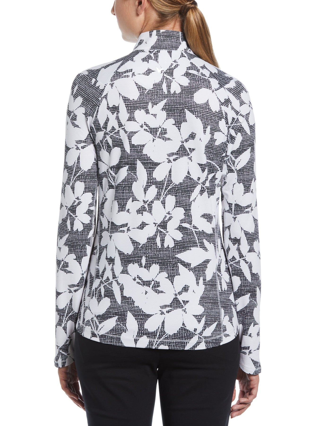 Endorsed by the Skin Cancer Foundation for UPF sun protection, this Callaway women’s long sleeve golf shirt offers both ample coverage and elegant modern style. The sleek women’s golf top is printed all over with an eye-catching abstract floral print and made with a textured fabric that will add a subtle boost of visual flair to your athletic outfits. It wicks away moisture to help keep you comfortable and dry, while a good amount of stretch in the material helps to ensure you can make each swing comfortably. Loaded with practical performance features, this women’s long sleeve golf shirt also transitions seamlessly to a sunny lunch with the girls or a relaxing stroll through the park.