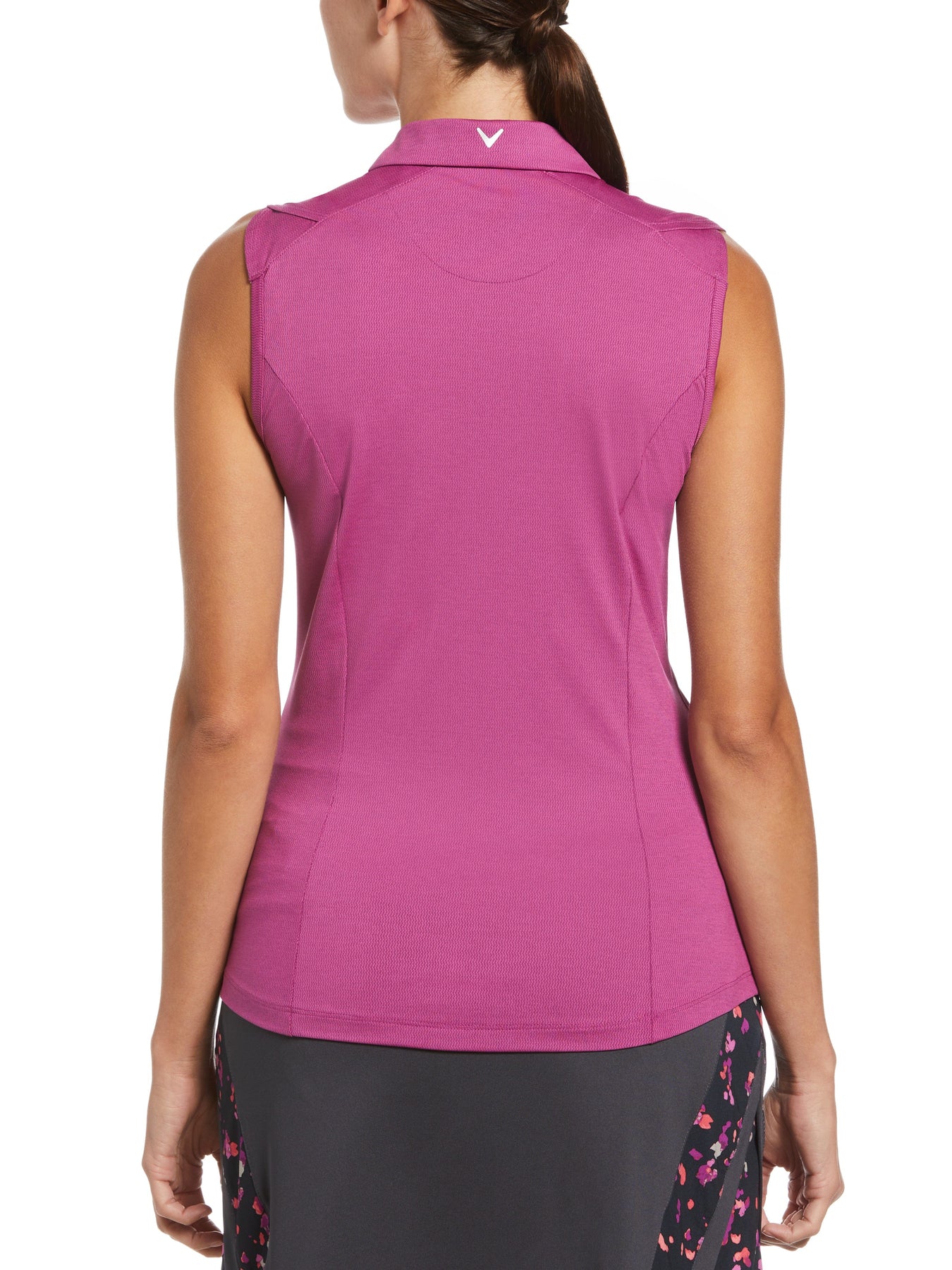 This Callaway women's golf shirt follows your every move with enhanced stretch for a full range of motion. The sleeveless design increases ventilation for breathability while cooling and moisture-wicking Opti-Dri™ technologies help keep you comfortable. A self collar with quarter-zip closure adds smart polo style while allowing for easy on and off. Crafted with durable single-knit fabrication featuring sun protection, this polo top is a cool option in warm weather.