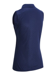 Outlines of tropical flowers bring some island flair to this comfortable Callaway sleeveless golf shirt. The ladies' golf polo is made from durable double knit fabric, with allover ventilation to help keep you cool. Moisture-wicking technology helps to prevent sweat from lingering, while a contrasting solid-colored ribbed collar and matching zipper add some extra visual punch to the look.