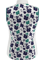Outlines of tropical flowers bring some island flair to this comfortable Callaway sleeveless golf shirt. The ladies' golf polo is made from durable double knit fabric, with allover ventilation to help keep you cool. Moisture-wicking technology helps to prevent sweat from lingering, while a contrasting solid-colored ribbed collar and matching zipper add some extra visual punch to the look.