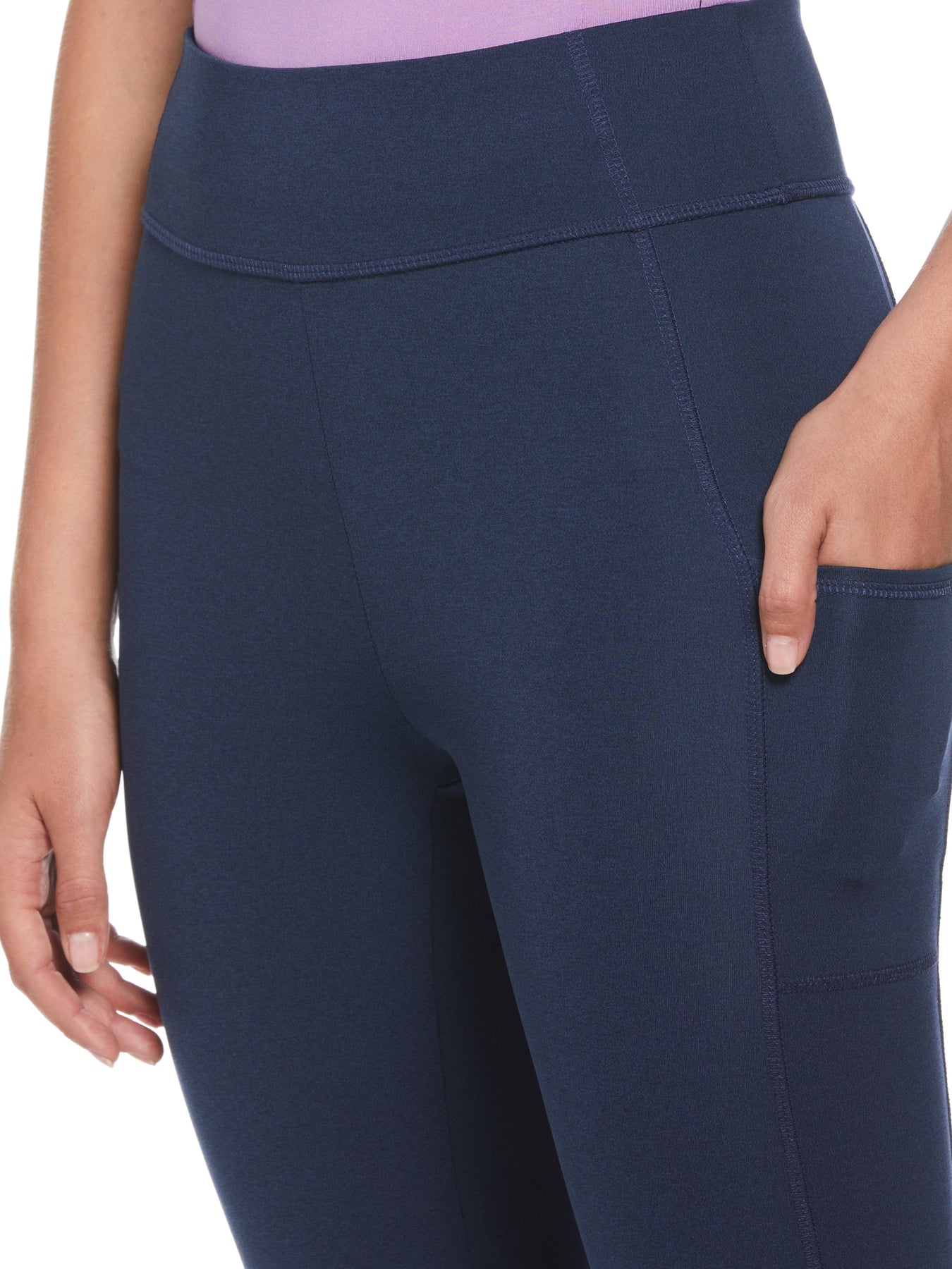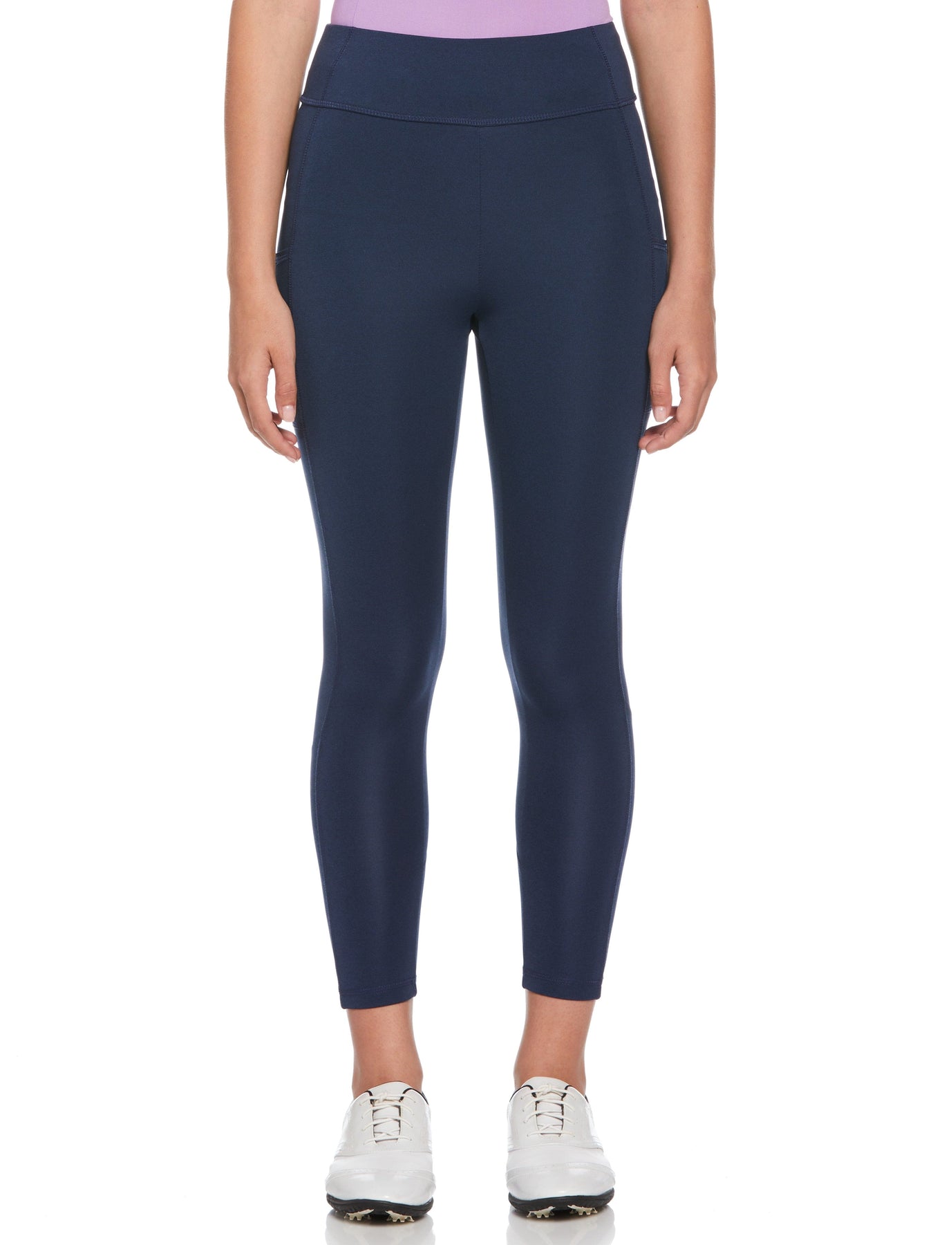 These Callaway pull-on women's golf pants are designed for comfort, performance and style. Double-knit fabrication offers durability and a TrueSculpt™ panel provides a smooth and flattering silhouette. Added stretch in the fabric ensures a full range of motion. These fitted golf leggings are equipped with sun protection to help block out the sun’s harmful rays as you play through on sunny days.