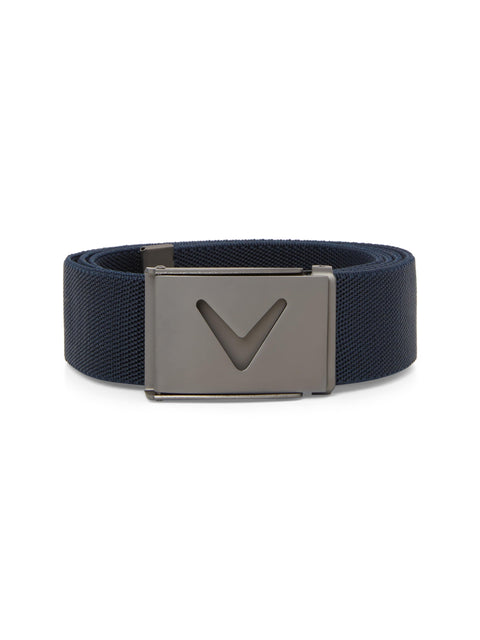 On or off the course, you can accessorize with style using this versatile Callaway golf belt. The solid web golf belt effortlessly complements your golf wear or casual outfits, and the adjustable V-logo buckle ensures a secure closure while adding a fashionable finishing touch.