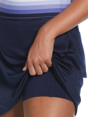 This 17" chevron gradient asymmetrical skort from Callaway Apparel delivers performance and style on and off the course. Crafted from a comfortable stretch jersey blend of 95% recycled polyester and 5% elastane, it allows for a full range of motion. Opti•Dri™ moisture-wicking technology keeps you dry and comfortable, while Truesculpt technology provides a flattering, smoothing fit. Added UV Block sun protection and a modern chevron gradient print with an asymmetrical hem complete this functional and stylish skort, made with 30% recycled polyester for an eco-conscious touch.