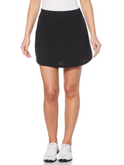 Gear up in this versatile black solid-colored Callaway women's black golf skort. The skort is perforated for breathability, which helps to keep you comfortable as you refine your swing. The inner shorts are made with 4-way stretch for a flexible fit. Opti Dri™ moisture-wicking technology helps to manage perspiration, keeping you cool and dry.