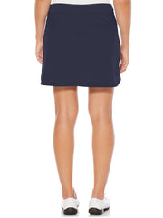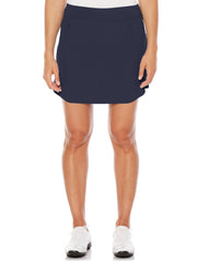 Get on the fast track to finding the fairway in this Callaway golf skort in navy. Perforated all over to maximize breathability, this solid-colored skort is the perfect addition to your wardrobe and pairs well with any polo design. Callaway's ventilated four-way stretch that resides inside the short create the ultimate on-course comfort.