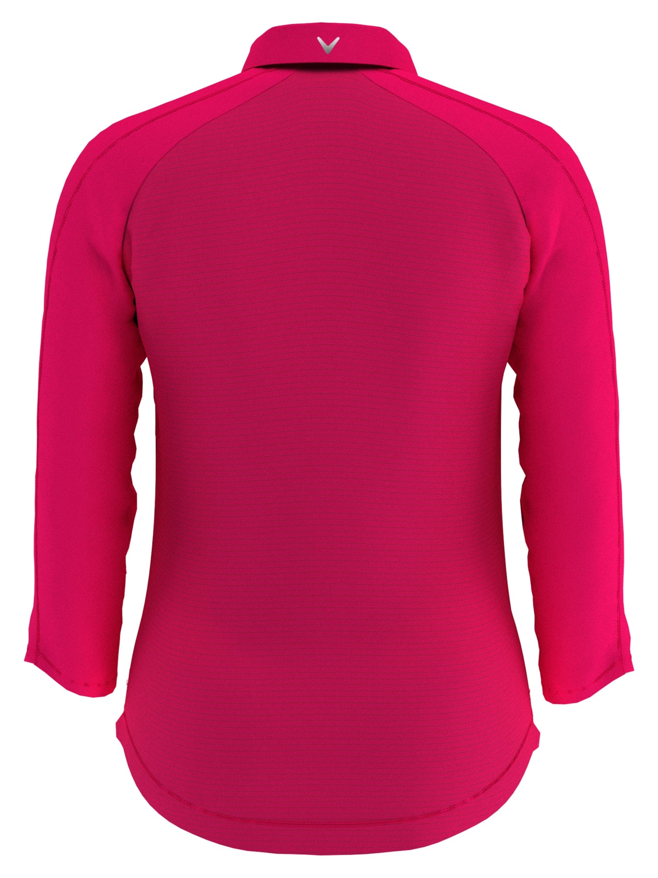 This three-quarter sleeve Callaway women's golf polo is loaded with practical features to help you play each round in comfort and style. Stretch fabric and the innovative Swing Tech design give you the freedom of motion you need to push past your personal best on the course. The women's golf shirt has UPF 50 protection to help defend against the sun's harmful rays. Opti Dri™ moisture-wicking technology helps to keep you cool and dry. Shadow stripes add casual flair to the design.
