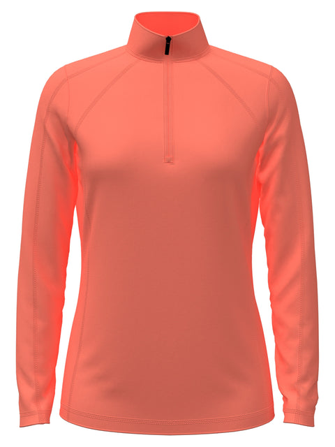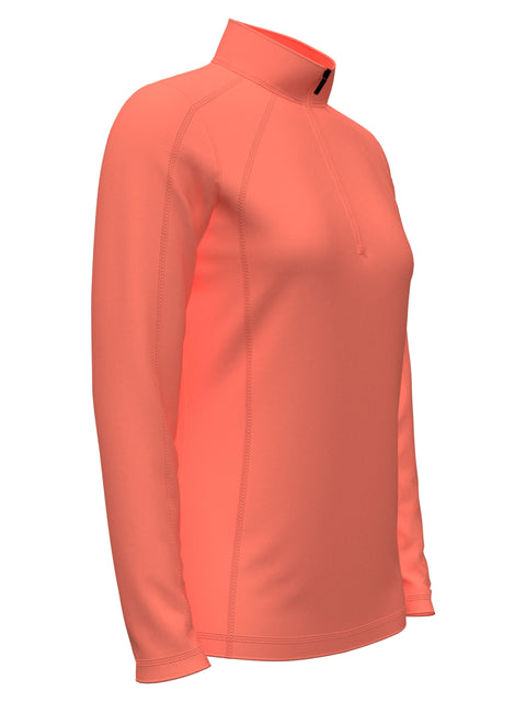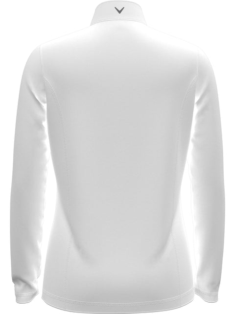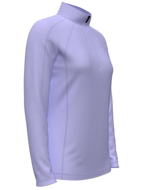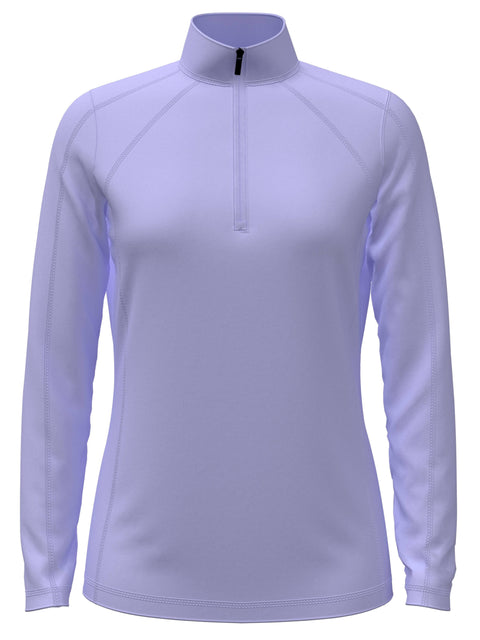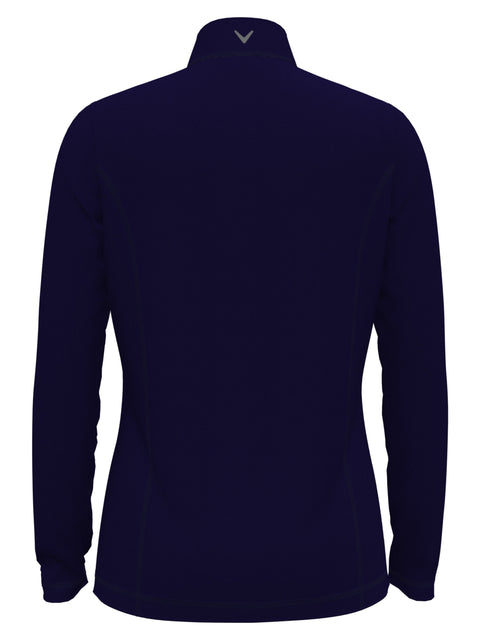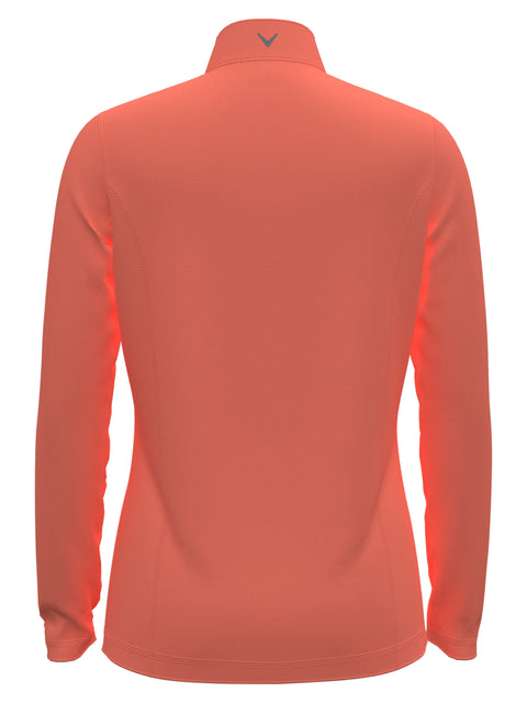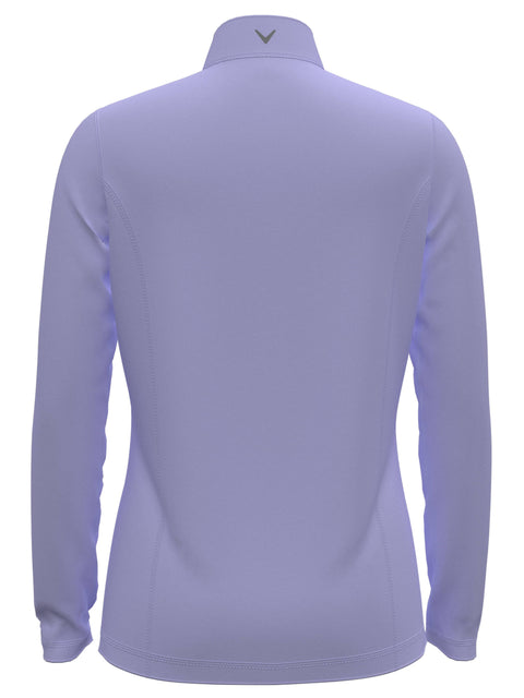 The Women's Brushed Heather Pullover from Callaway Apparel is a long-sleeved base layer perfect for active wear. Crafted from a comfortable blend of 88% polyester and 12% elastane, this 1/4 zip mock neck features tonal stitching details and offers a full range of motion thanks to its stretchy, double knit fabric. It also includes sun protection for added comfort and performance.