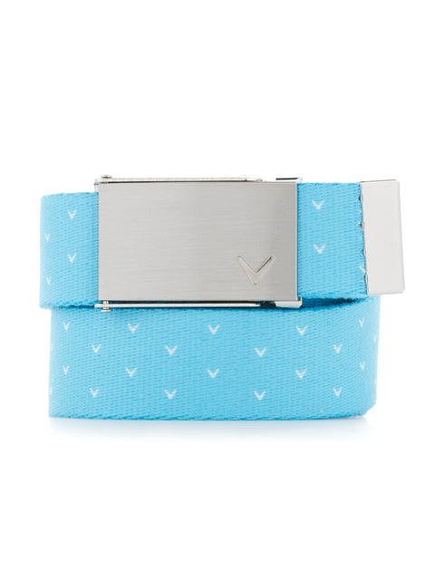 Accessorize your favorite golf pants or shorts with this smart and stylish women’s golf belt. A chevron print adds a fashionable finish while the reversible cut-to-fit design ensures versatility. A polished nickel buckle with debossed Callaway chevron logo pops against this cotton web belt for a polished, sporty look that’s always on the right course.