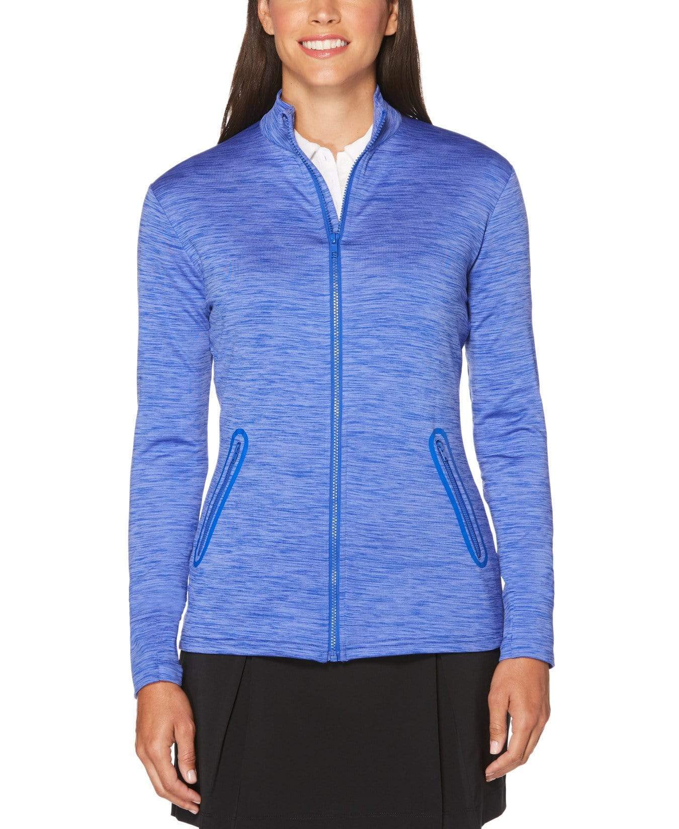 This heathered fleece golf jacket addresses your need for warm golf gear. Insulated thermal fabric creates a barrier between you and cold weather by keeping you warm. Stretch fabric ensures maximum range of motion. Fleece fabrication finishes extra soft for enhanced comfort..
