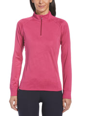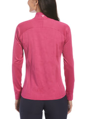 Opti Dri™ moisture wicking technology built into our womens golf jackets pulls sweat away from the body for on-course comfort throughout your round. Built-in sun protection prevents harmful UV rays from penetrating the fabric of the womens golf jacket, helping to protect covered skin on sunny days spent outdoors. Sophisticated jacquard fabrication creates a subtle textured pattern, and added stretch ensures a full range of motion for a smooth swing. Crafted with 30% recycled material, this ladies golf top is an eco-friendly choice you can feel good about.