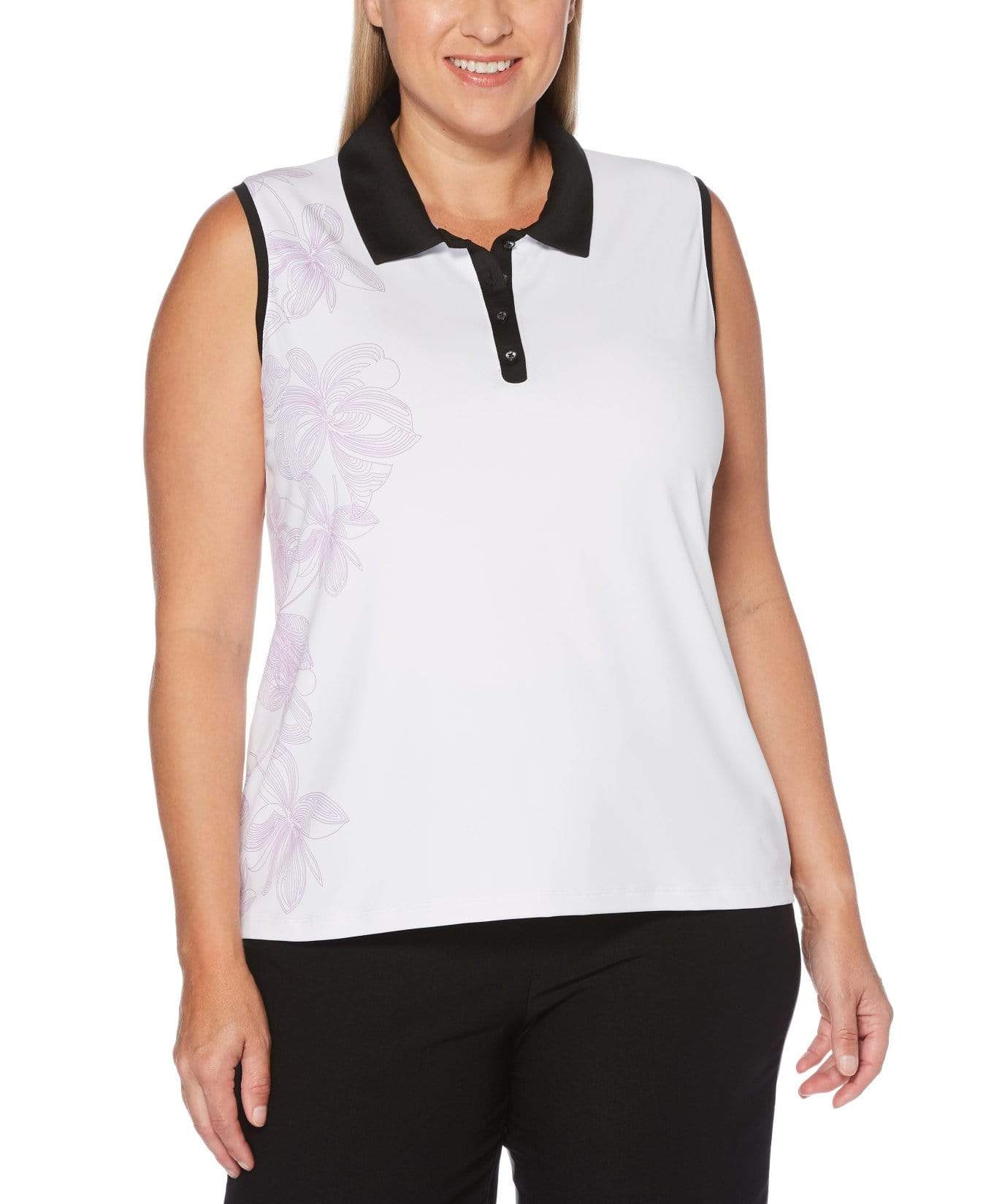 Featuring an elegant floral print down the front, this Callaway women's golf shirt will add plenty of feminine flair to your golf apparel. The stylish golf polo is made from stretch fabric to allow for a full range of motion. It has Opti Dri™ moisture-wicking to help you stay cool and comfortable when the sun is beating down on the green. Cooling technology transfers heat away from your body, helping you stay focused on scoring below par.