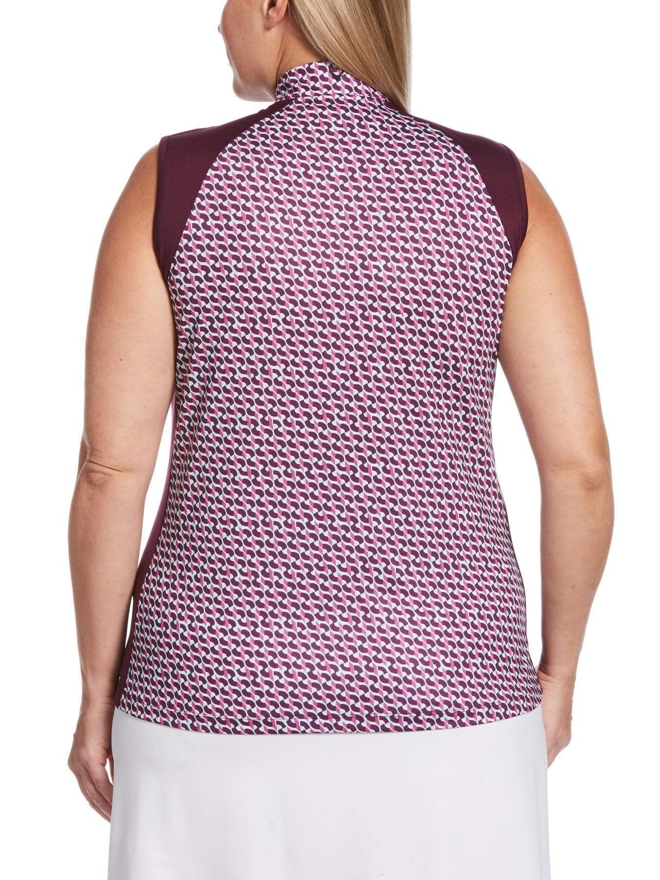 Practical comfort features meet fresh modern style in this cool Callaway women's golf shirt. The mock neck ladies' golf top features a funky geometric print along the front, back and collar for eye-catching style. Opti Dri™ moisture-wicking and cooling technologies help you stay comfortable when the pressure is on during competitive rounds. Stretch fabric maximizes your range of motion, while UPF 50 protection helps to guard against the sun's damaging rays.