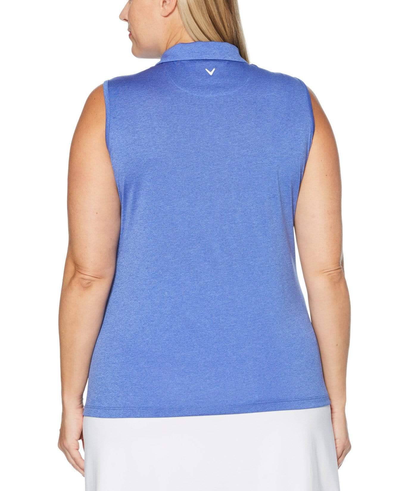 Update your performance golf wardrobe for spring with this heather print ladies golf polo shirt. The lightweight, sleeveless design is perfect for hitting the course in the warmer weather. This women's golf shirt is equipped with moisture-wicking technology to help you stay cool and dry and UV Block UPF 15 protects your skin from harmful UV rays. The stretch fabric moves with you for enhanced range of motion with each swing.