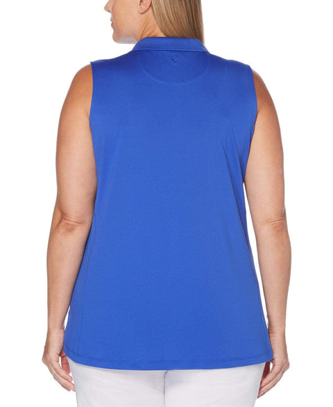 Experience the ultimate in cool comfort and flexibility in this Callaway women's sleeveless golf shirt. The stretch fabric is equipped with moisture-wicking technology that pulls sweat away from your body to keep you dry. The drop tail design looks great untucked and side vents offer breathable coverage. This ladies' golf top has UV Block UPF 50 protection to keep skin safe from the sun's harmful rays while you're out on the course.