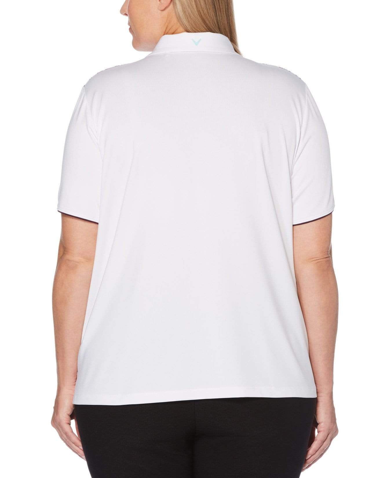 This comfortable Callaway women's golf polo has been updated with an elegant confetti floral print across the front chest for a sophisticated modern look. Great for everything from training to tournaments, the ladies' golf top features Opti Dri™ moisture-wicking technology to help keep you cool and dry. Stretch fabric allows for a full range of movement, so you can put maximum power behind each tee shot.